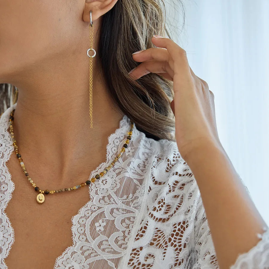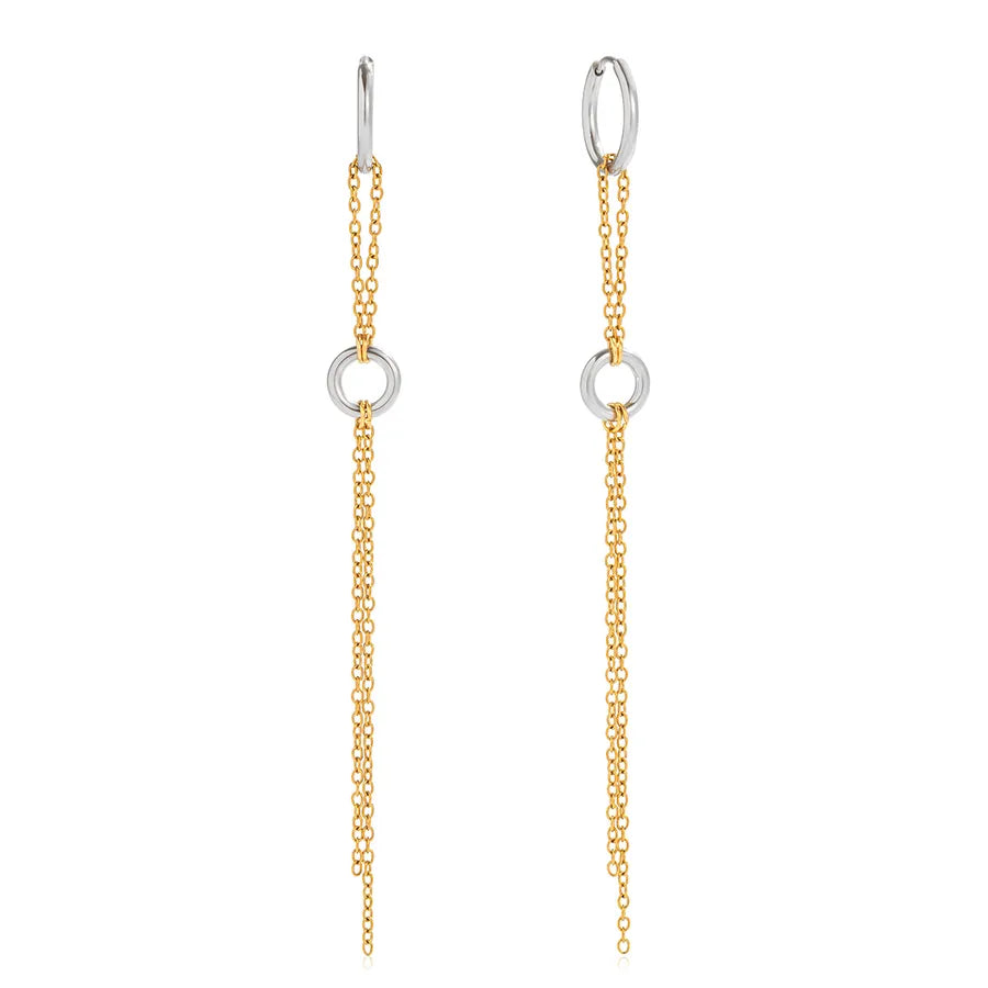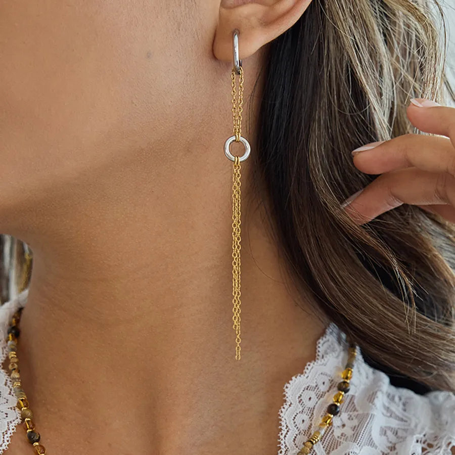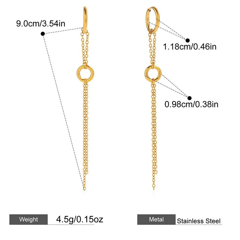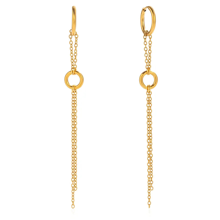 Women’s 18K Gold-Plated Block Round Chain Tassel Earrings