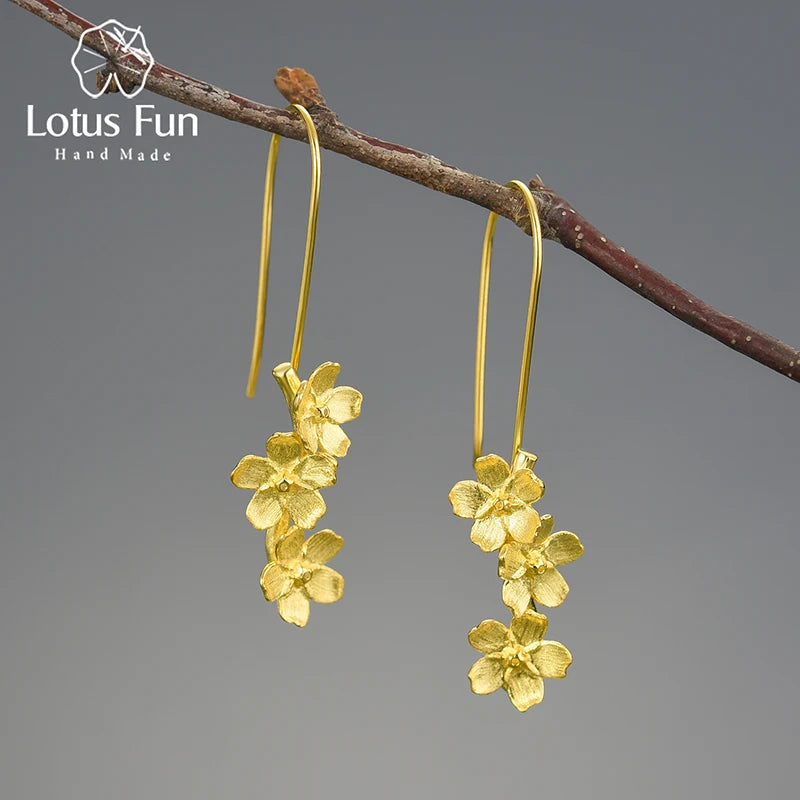 Elegant Flower Long Dangle Earrings 925 Sterling Silver