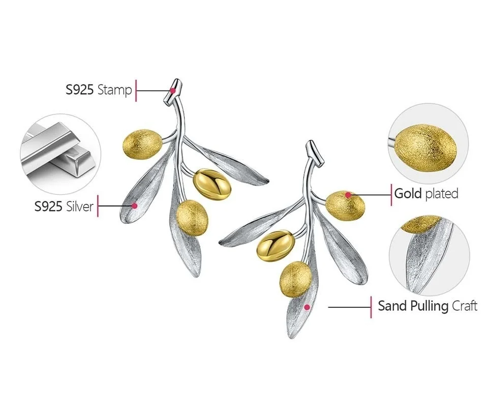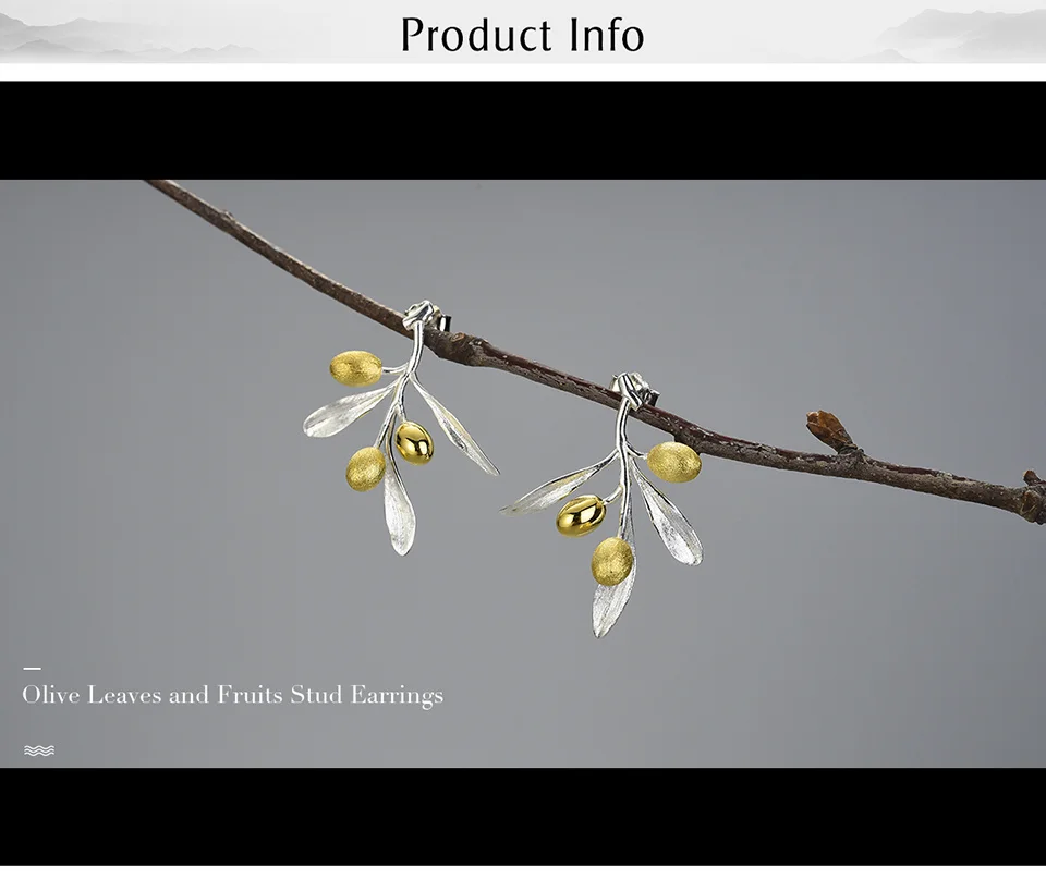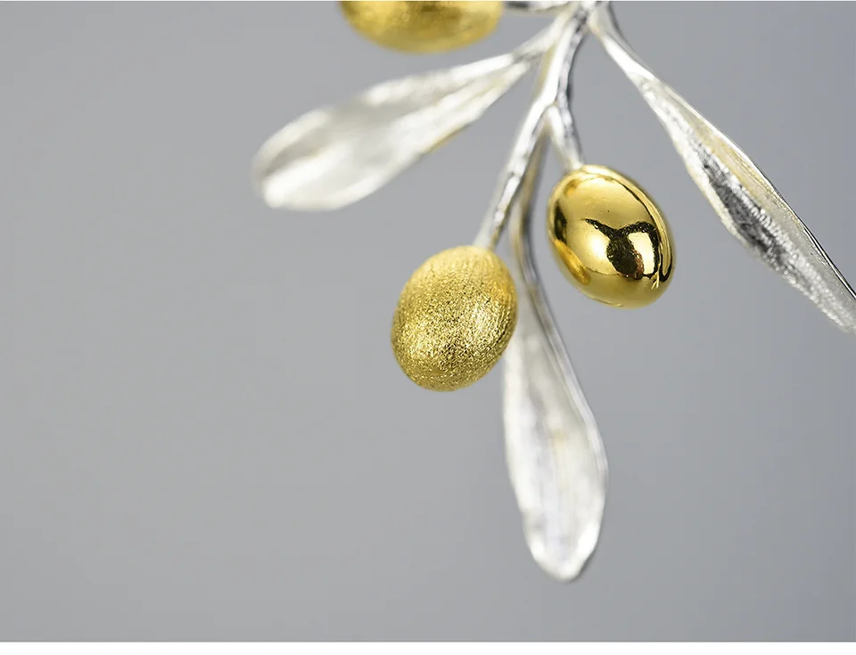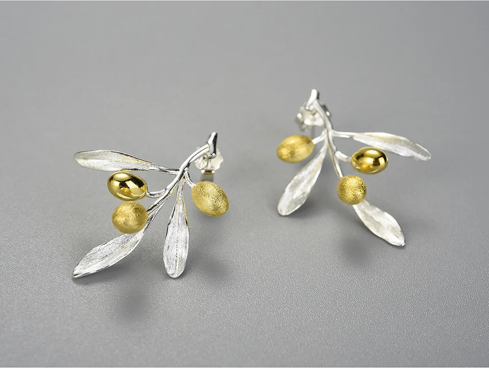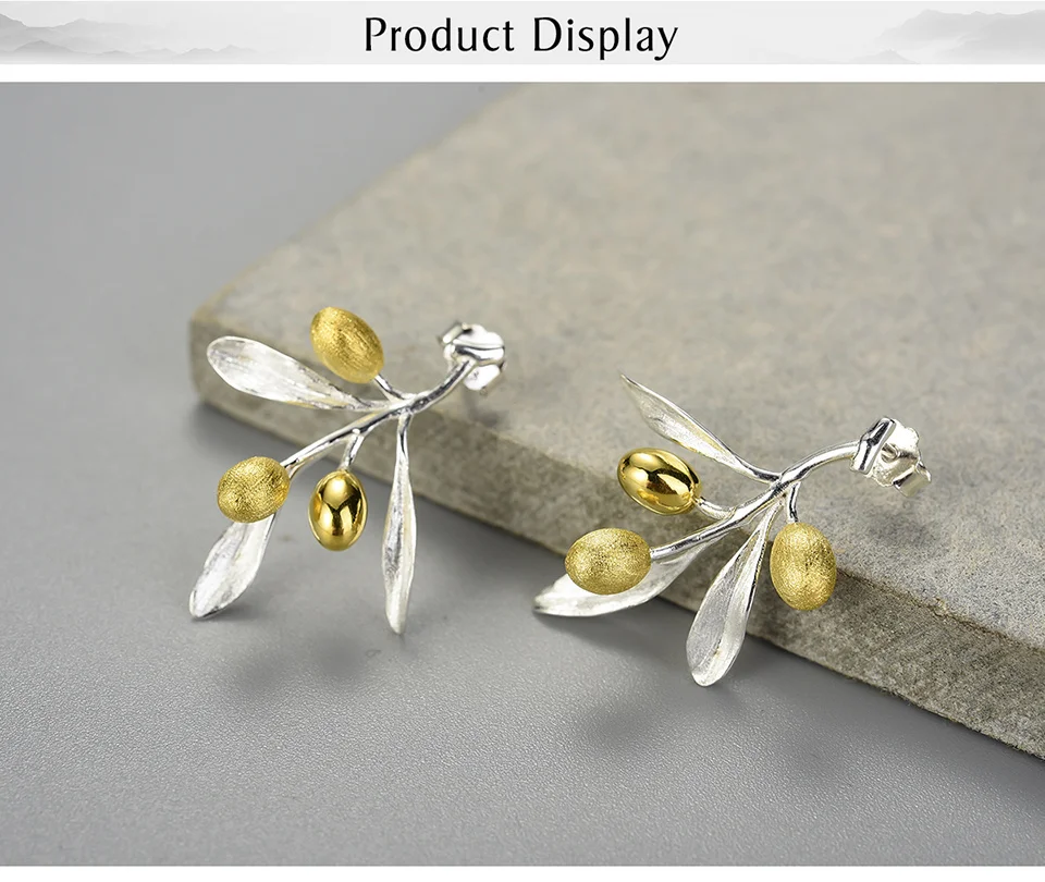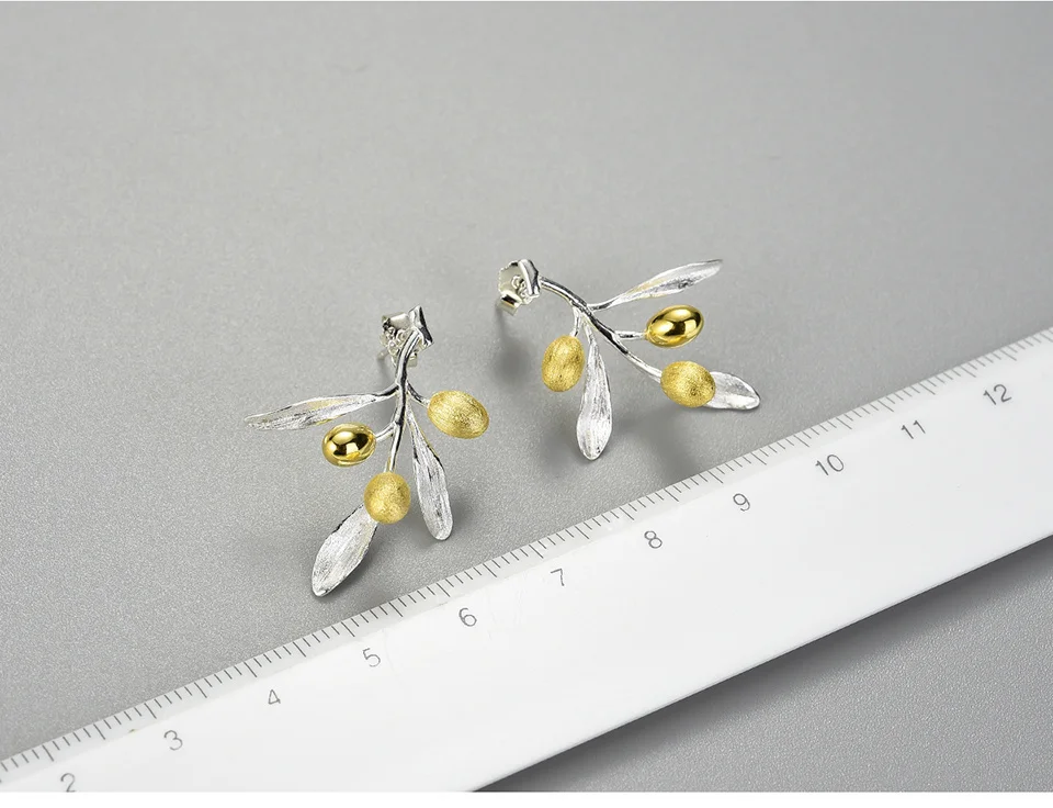 Olive Leaves Branch Fruits Earrings Real 925 Sterling Silver