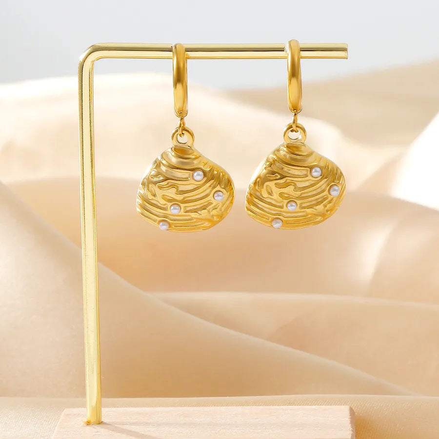 Women’s 18K Gold-Plated Shell & Pearl Ocean-Style Earrings