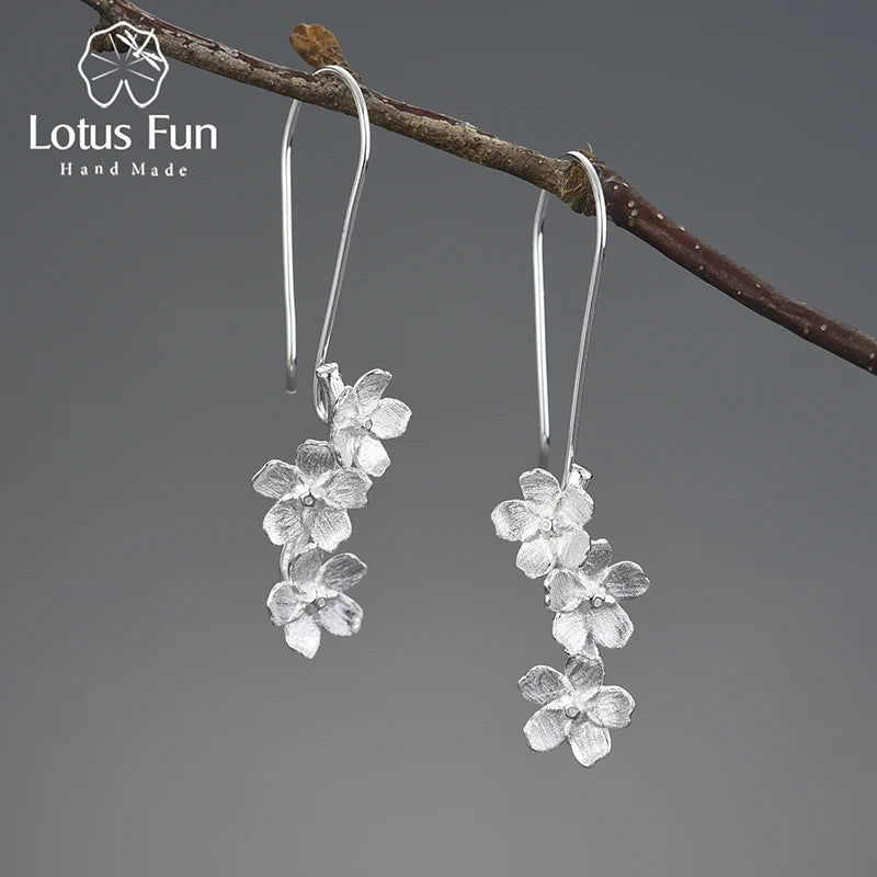 Elegant Flower Long Dangle Earrings 925 Sterling Silver
