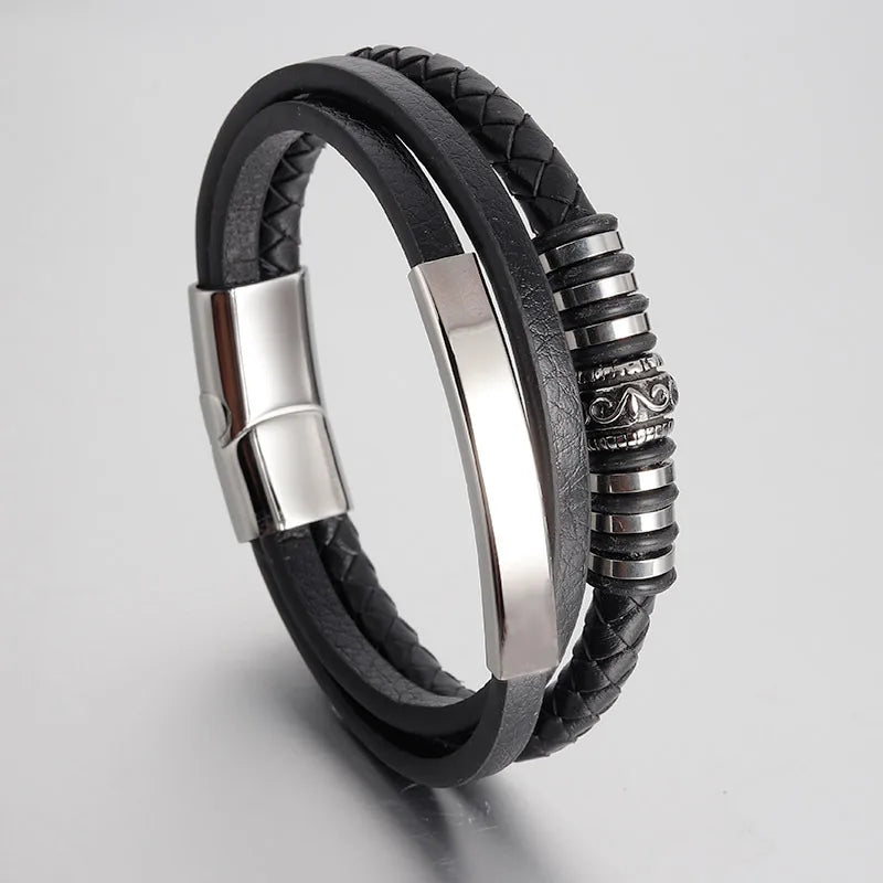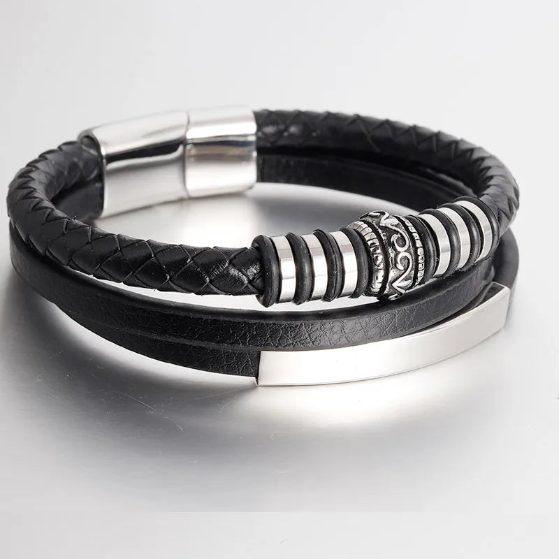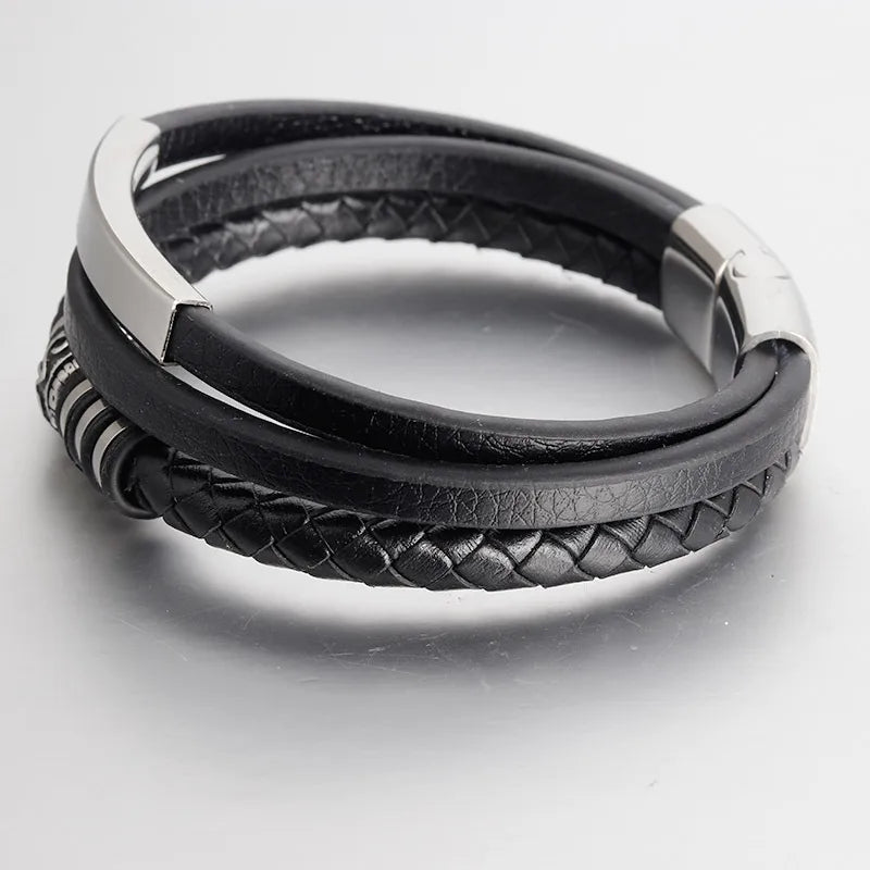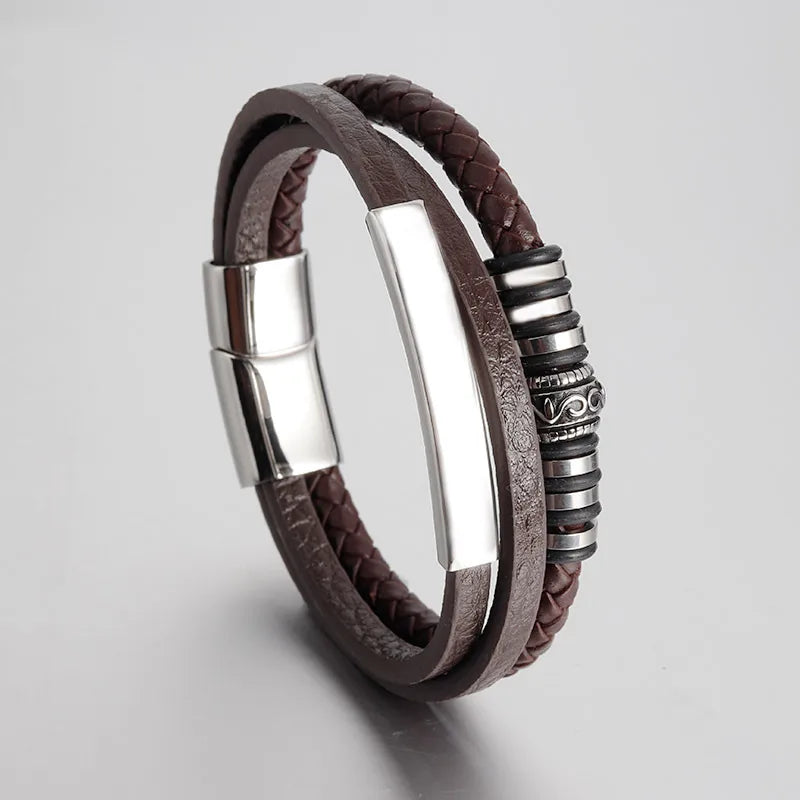 Men’s Genuine Leather & Stainless Steel Rope Bracelet