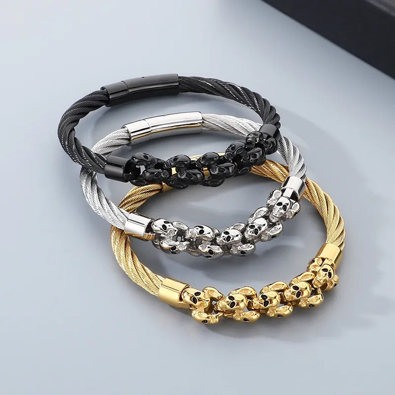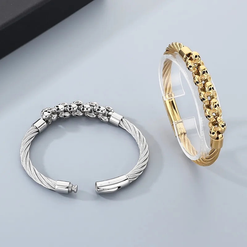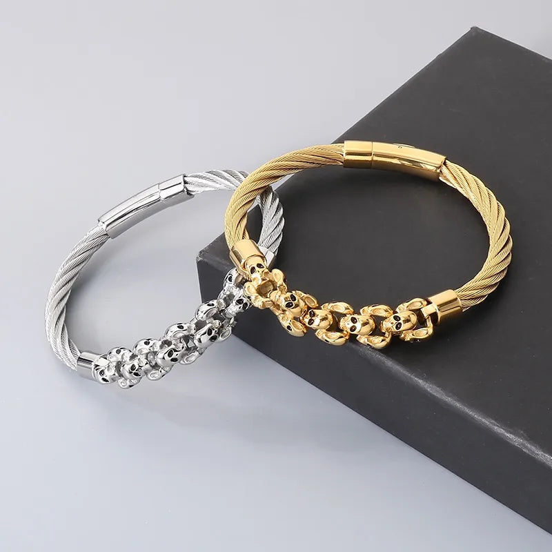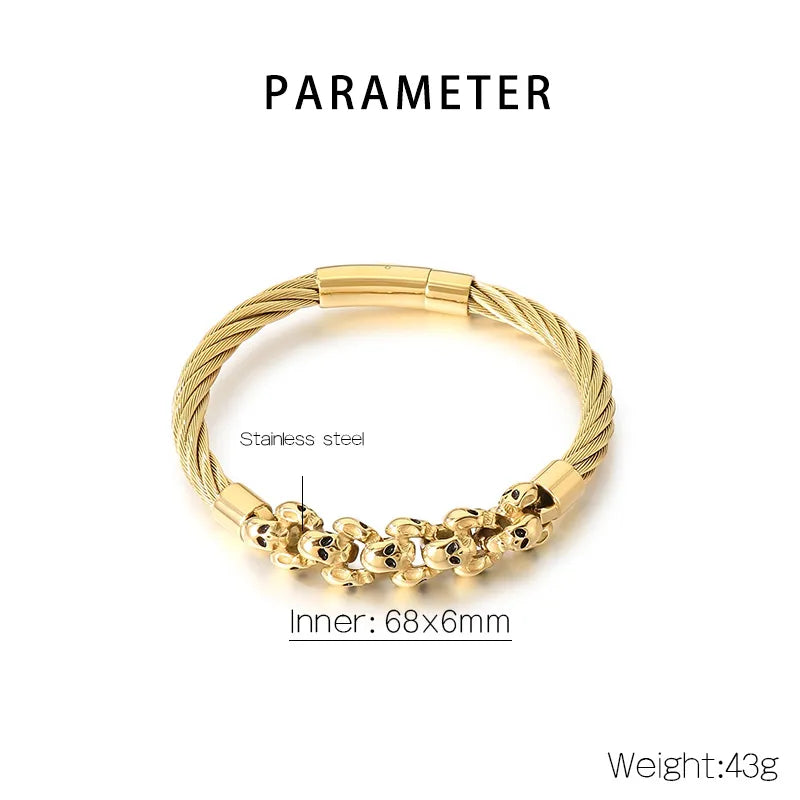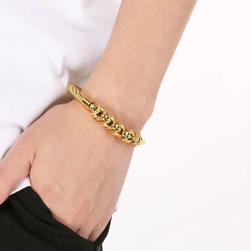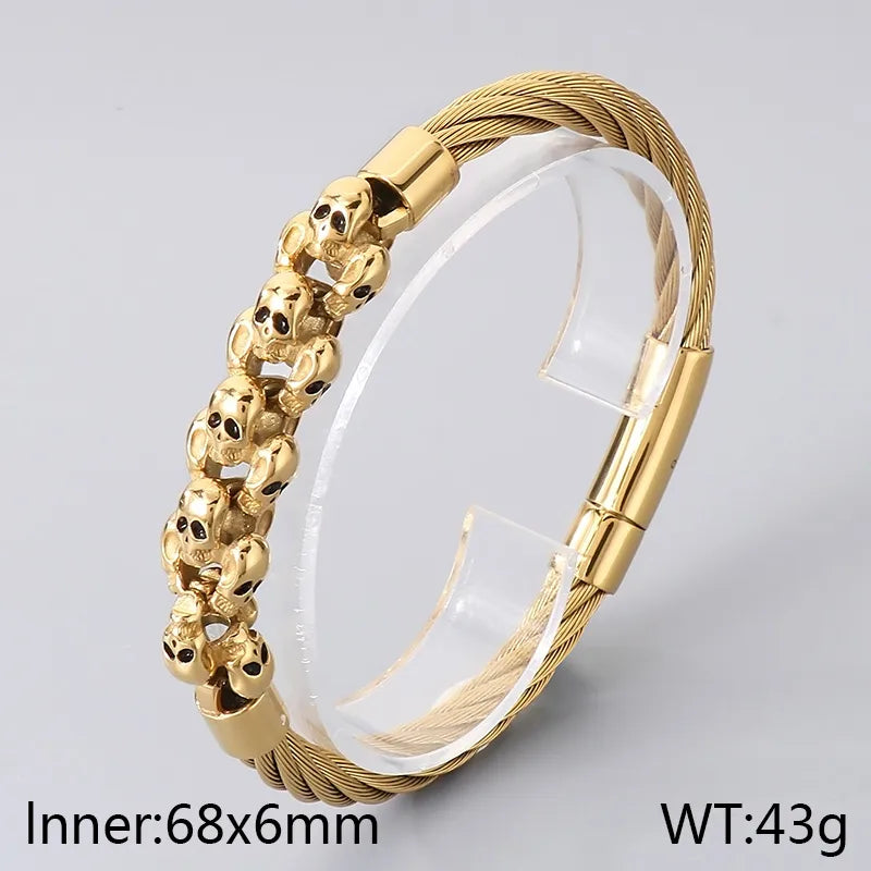 Men’s 18K Gold-Plated Stainless Steel Skull Wire Bracelet