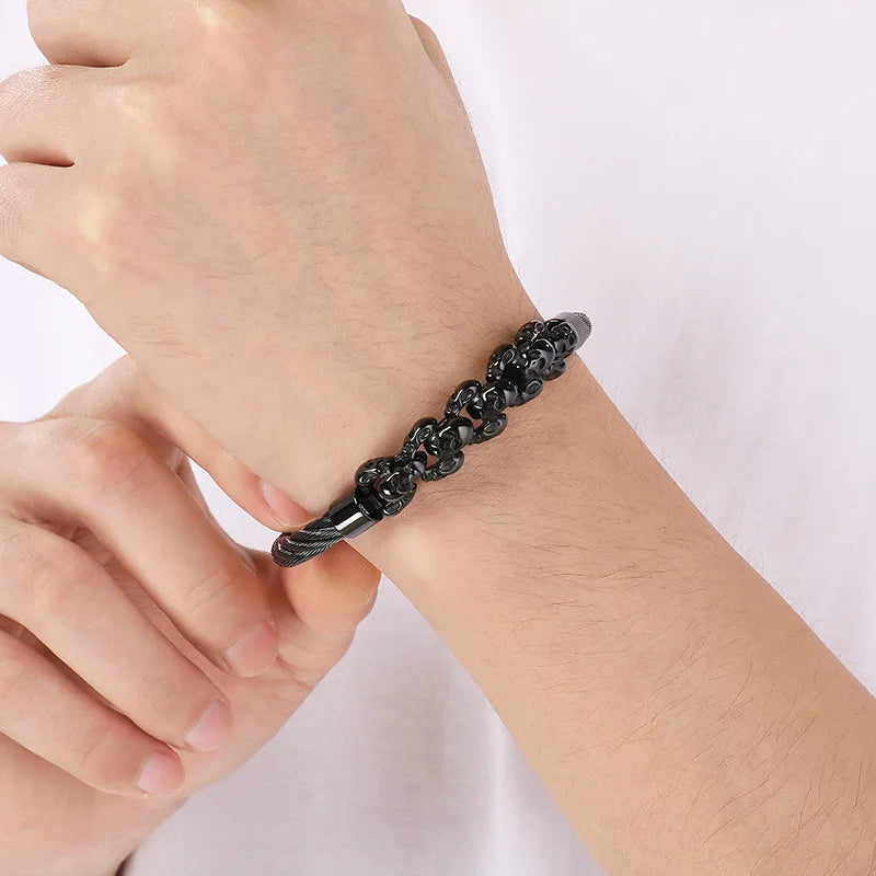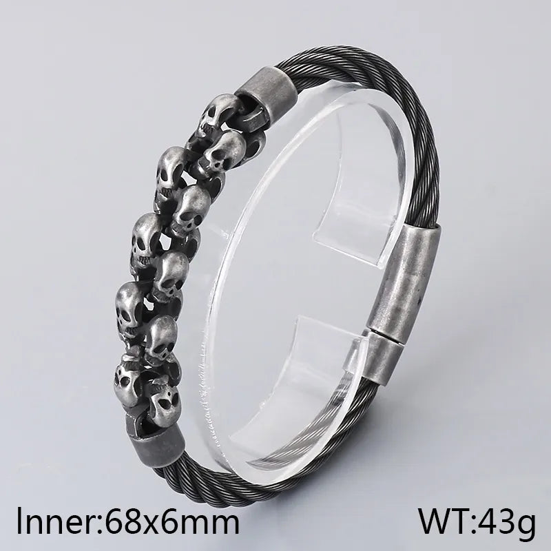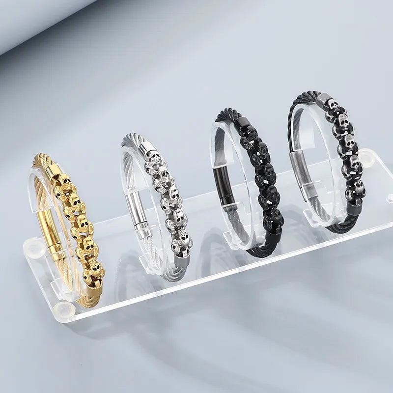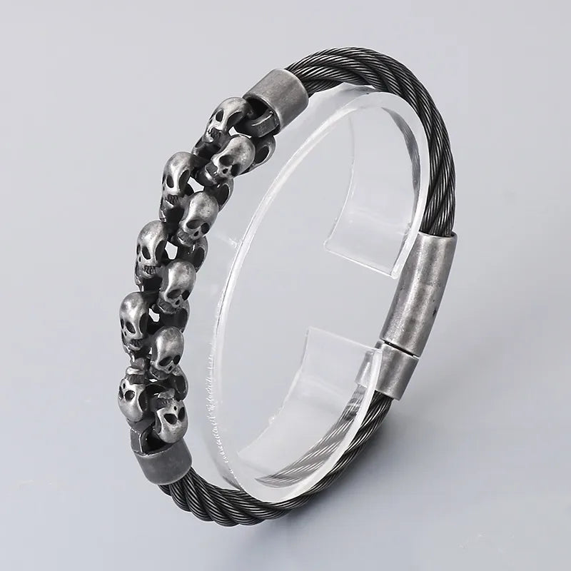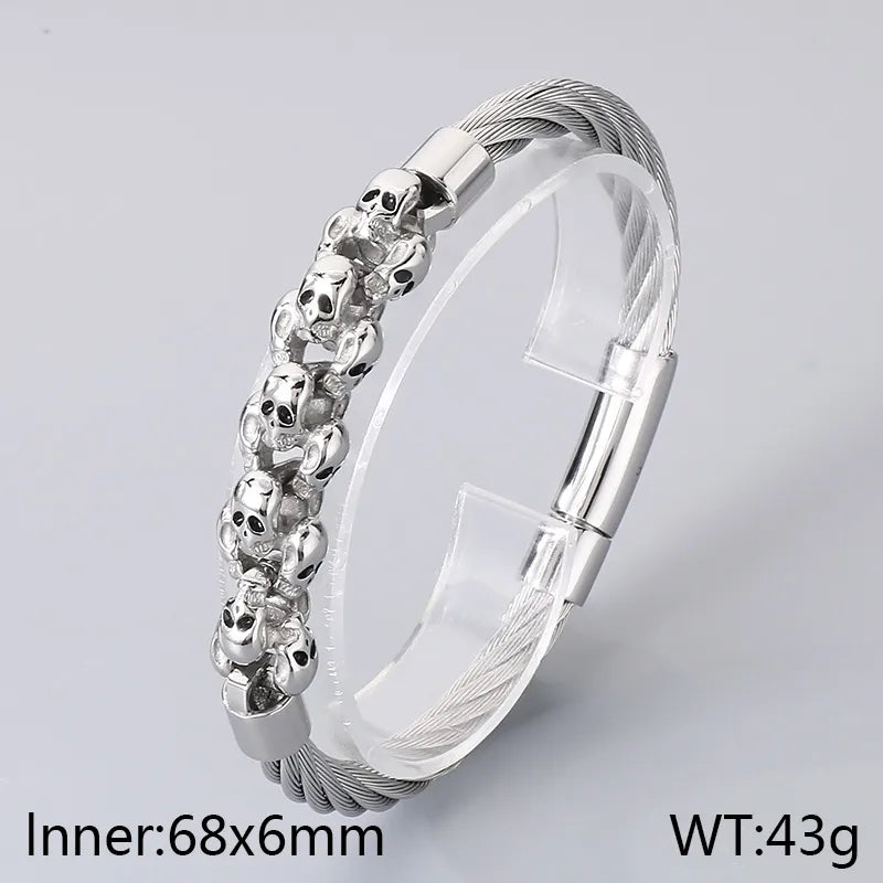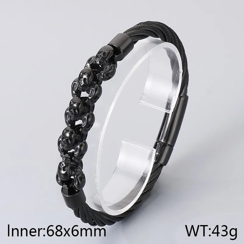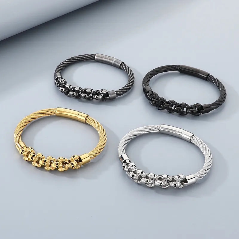 Men’s 18K Gold-Plated Stainless Steel Skull Wire Bracelet