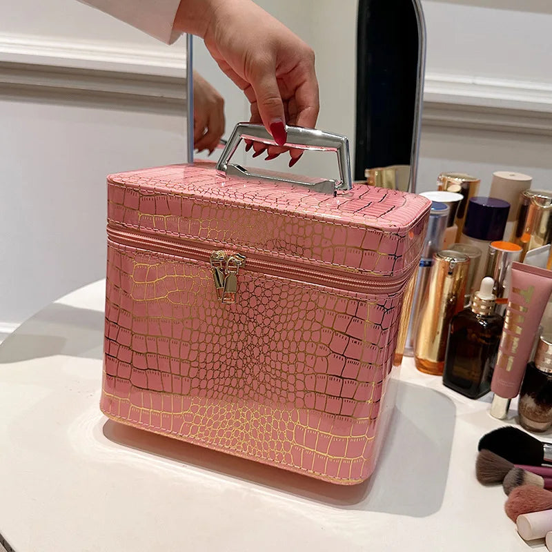 Large-Capacity Cosmetic Organizer Bag with Mirror