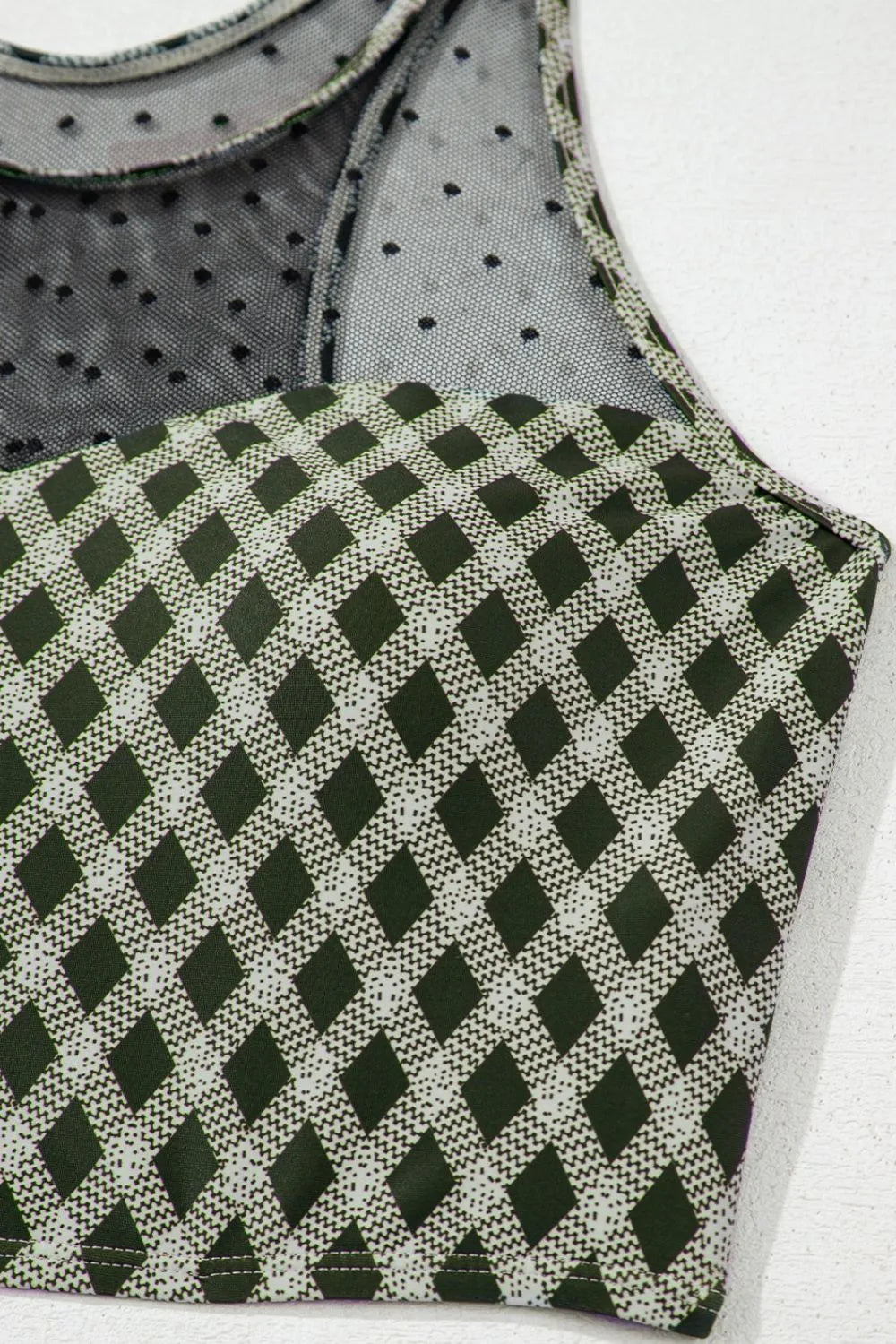 Dotted Mesh Plaid Patchwork High Waisted Swim Set