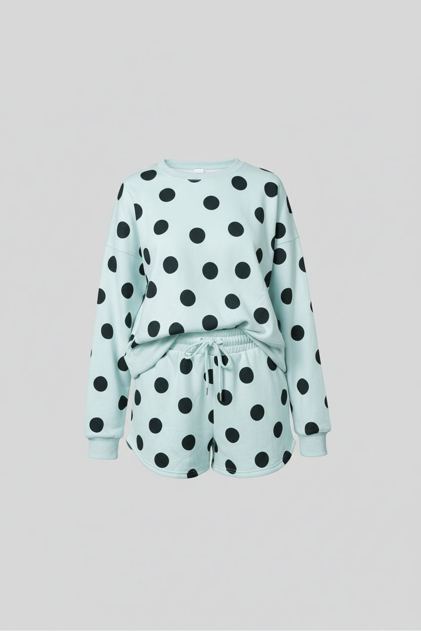 COFFEE Sequin Round Neck Long Sleeve Top and Shorts Set