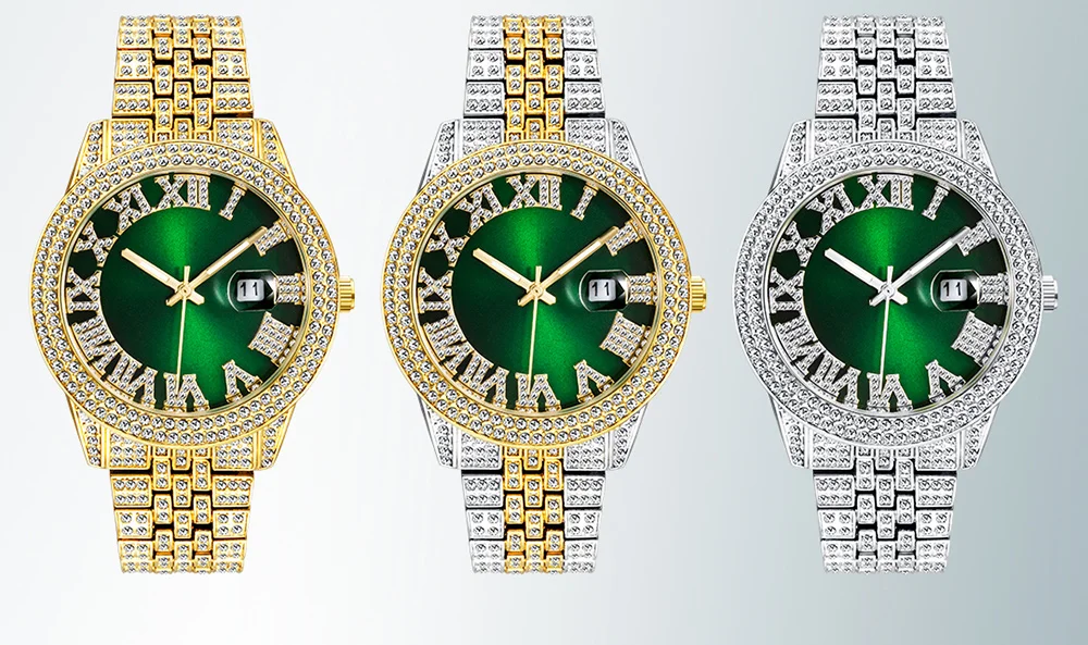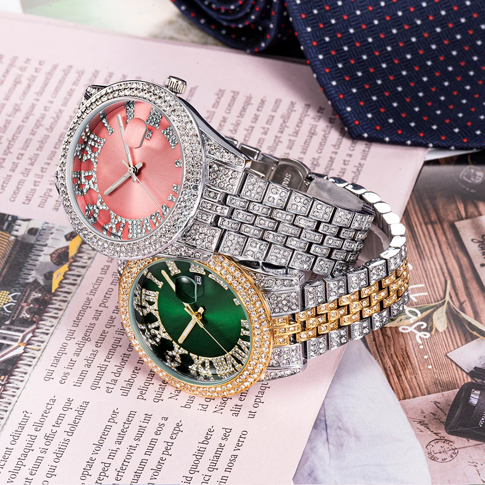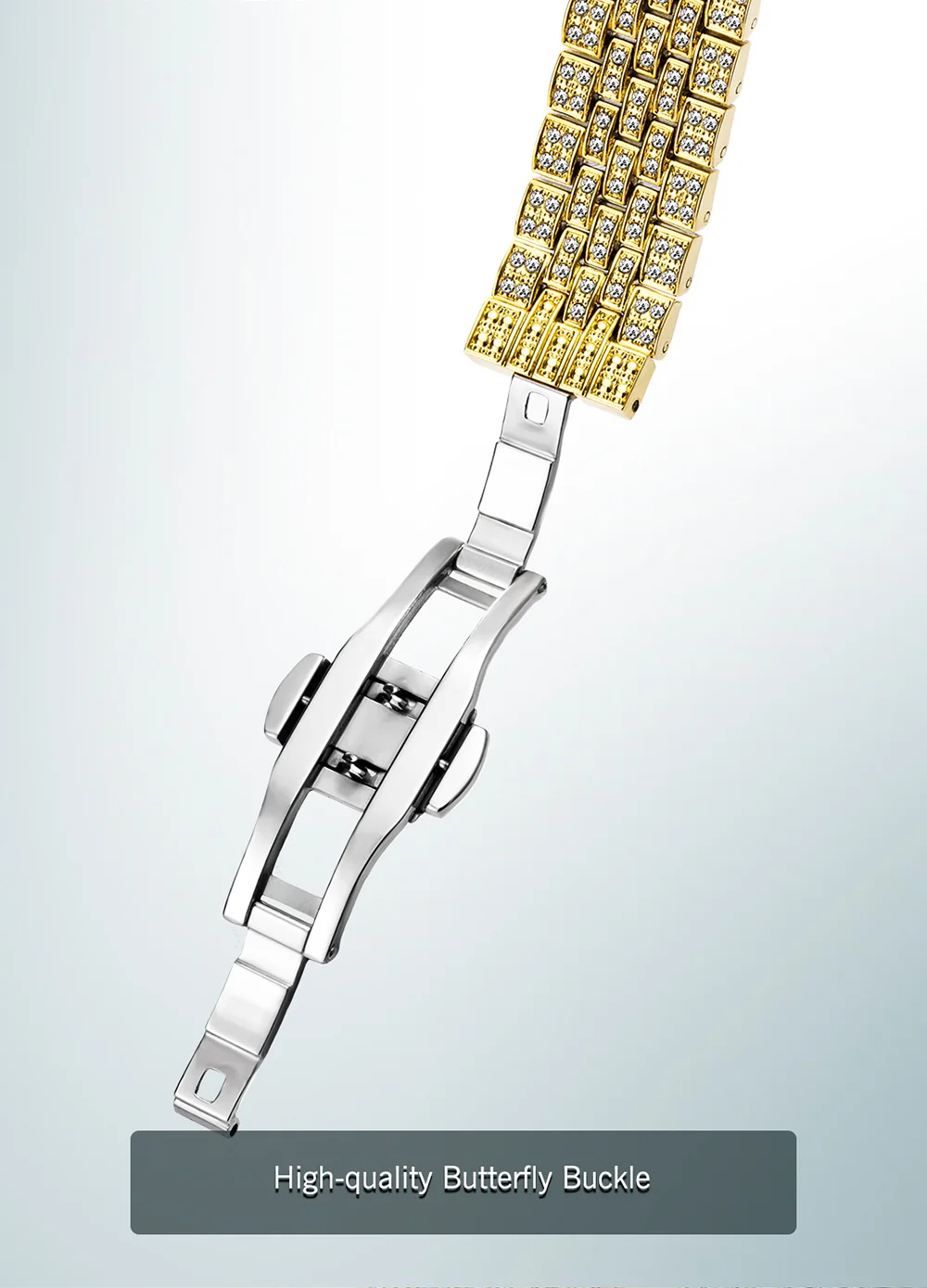 MISSFOX Watch For Men New Full Diamond Luminous Waterproof Male Quartz Wrist Watches Fashion 18k Gold Stainless Steel Calendar Women Reloj