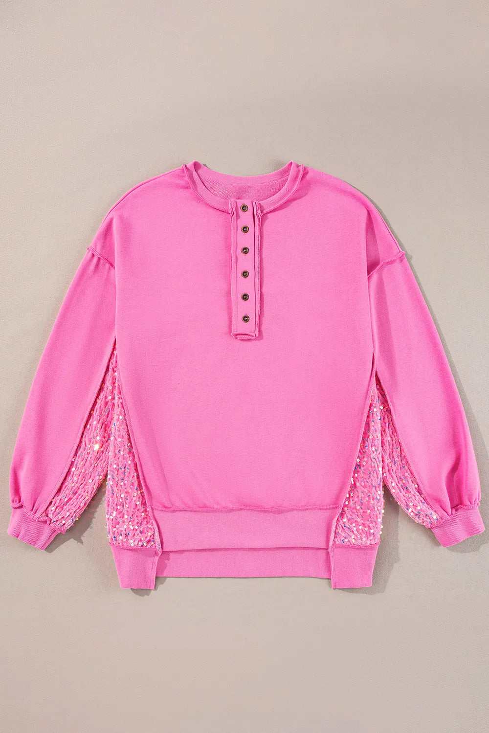 Sequin Half Button Long Sleeve Sweatshirt