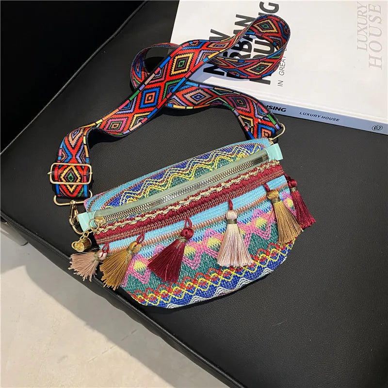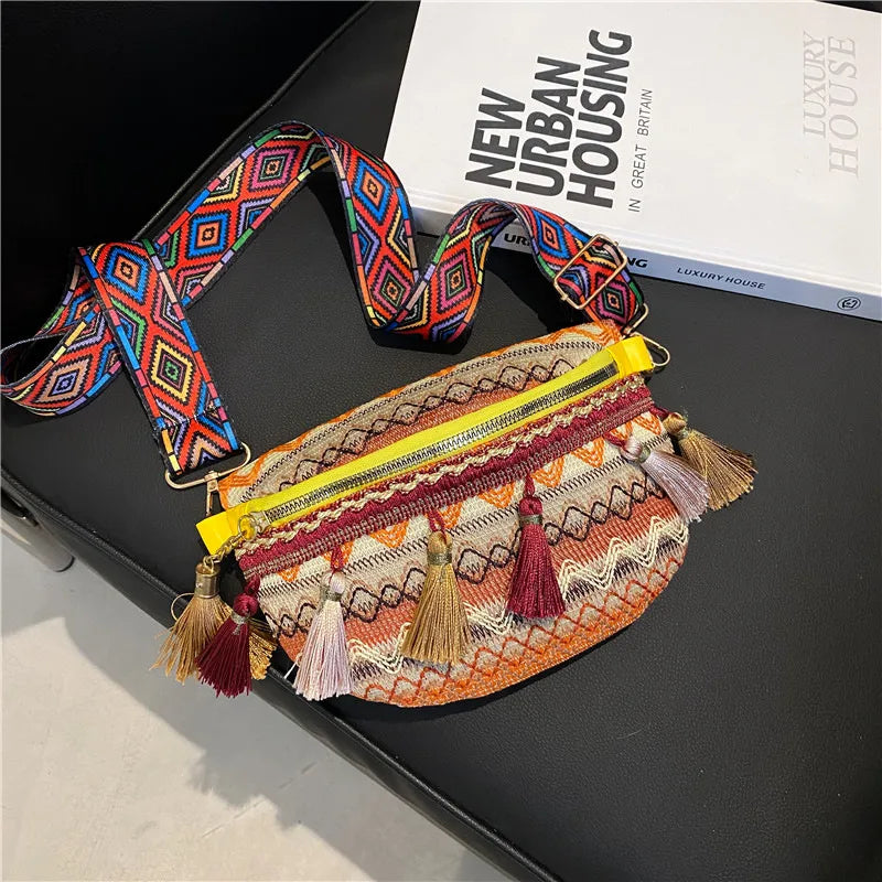Women's Ethnic Style Waves cotton and linen Waist Bags