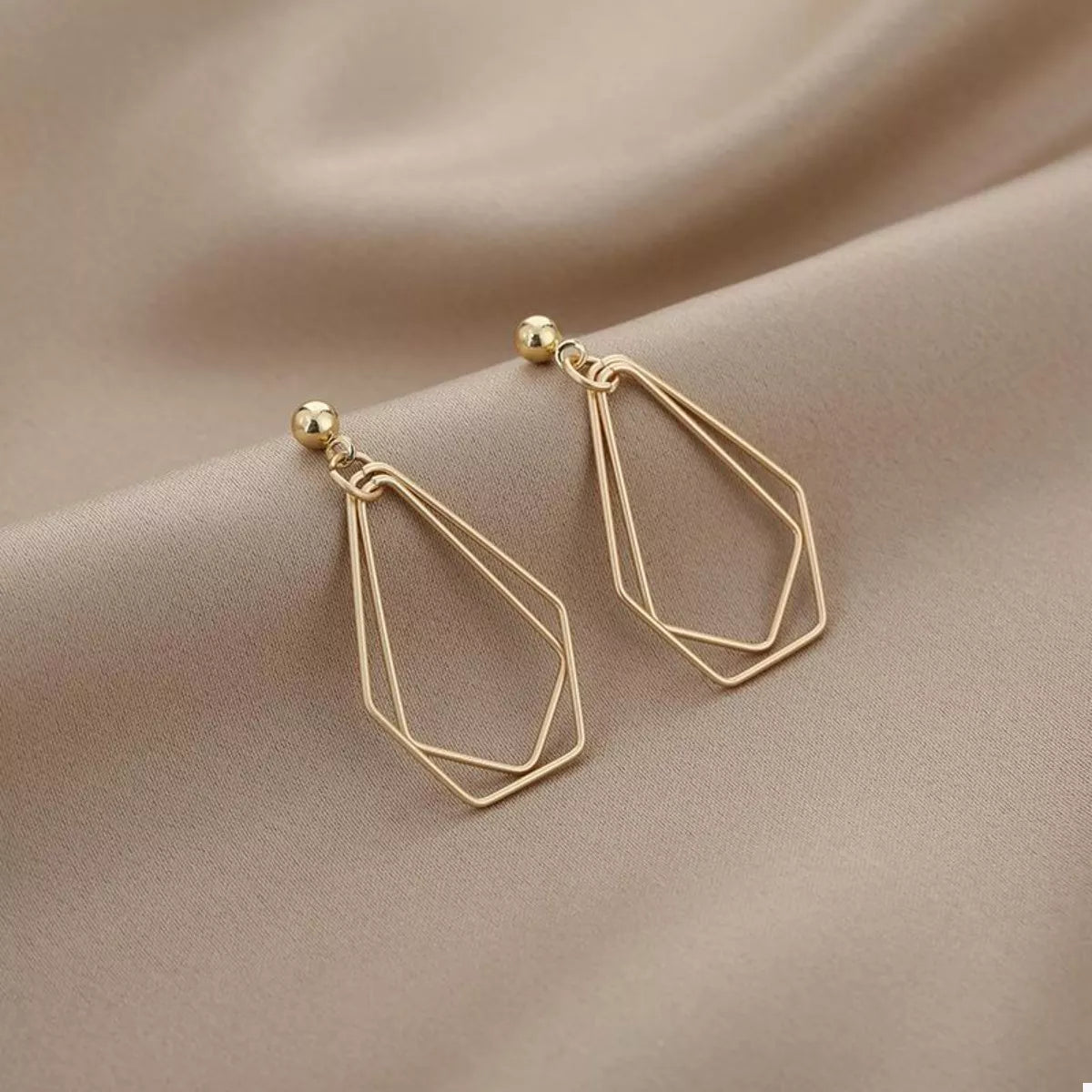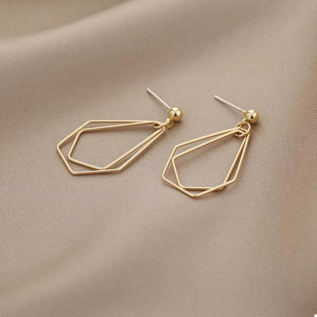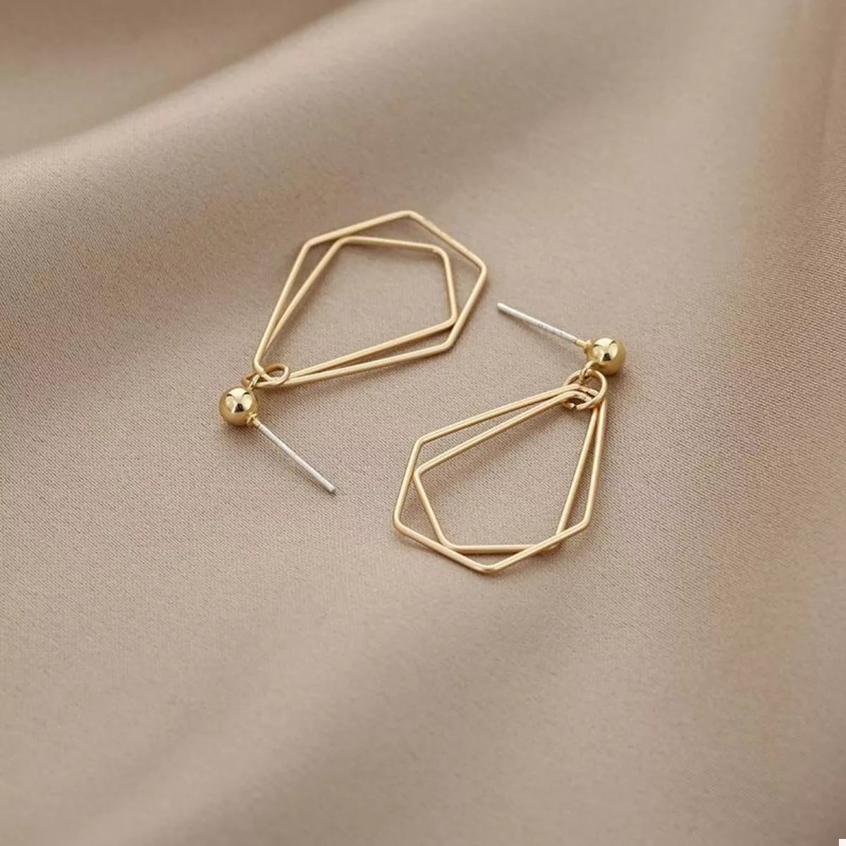 18K Gold-Plated Alloy Geometric Wire Drop Earrings