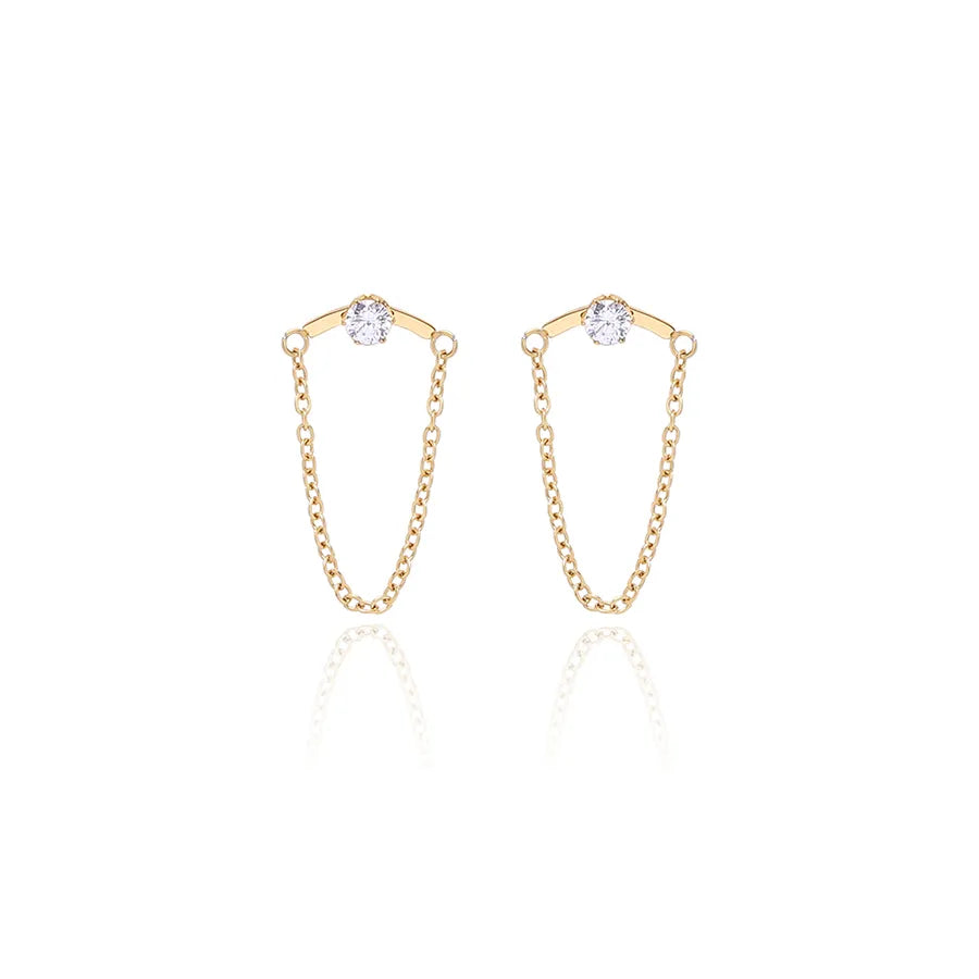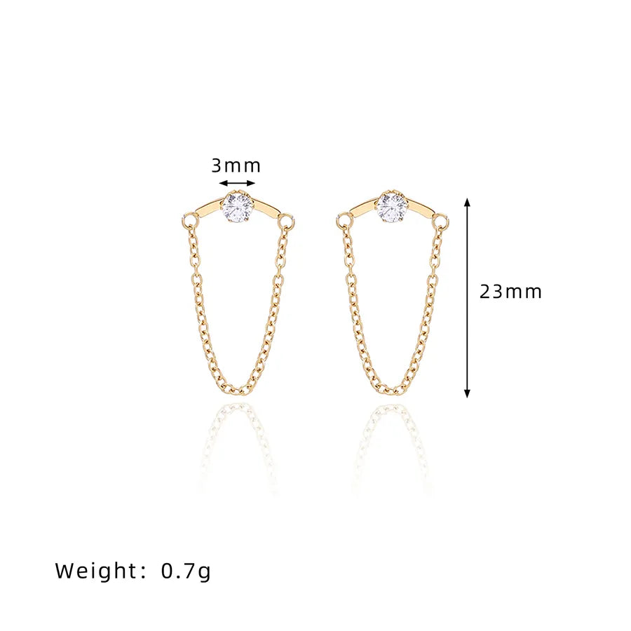 Tassel 18K Real Gold Claw Drill Back Hanging Earrings