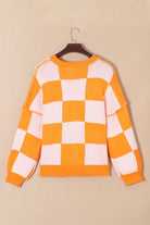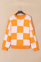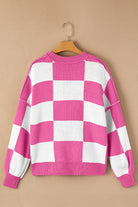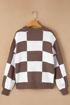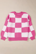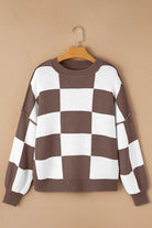 - Elevate your wardrobe with this stylish Checkered Bishop Sleeve Sweater