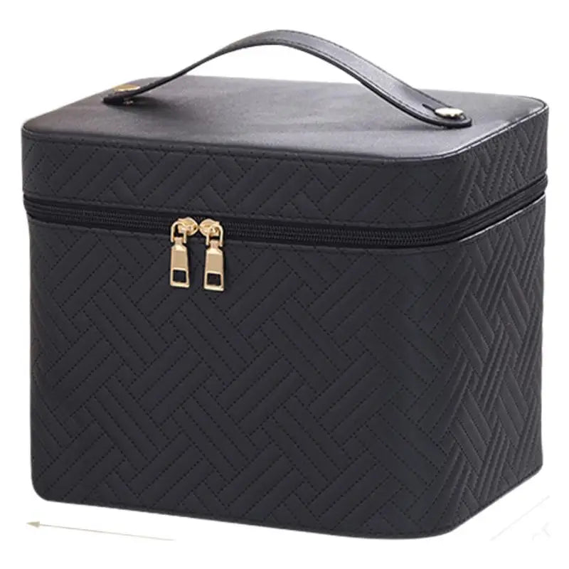 Saffiano Split Leather Travel Makeup Organizer Case Bag