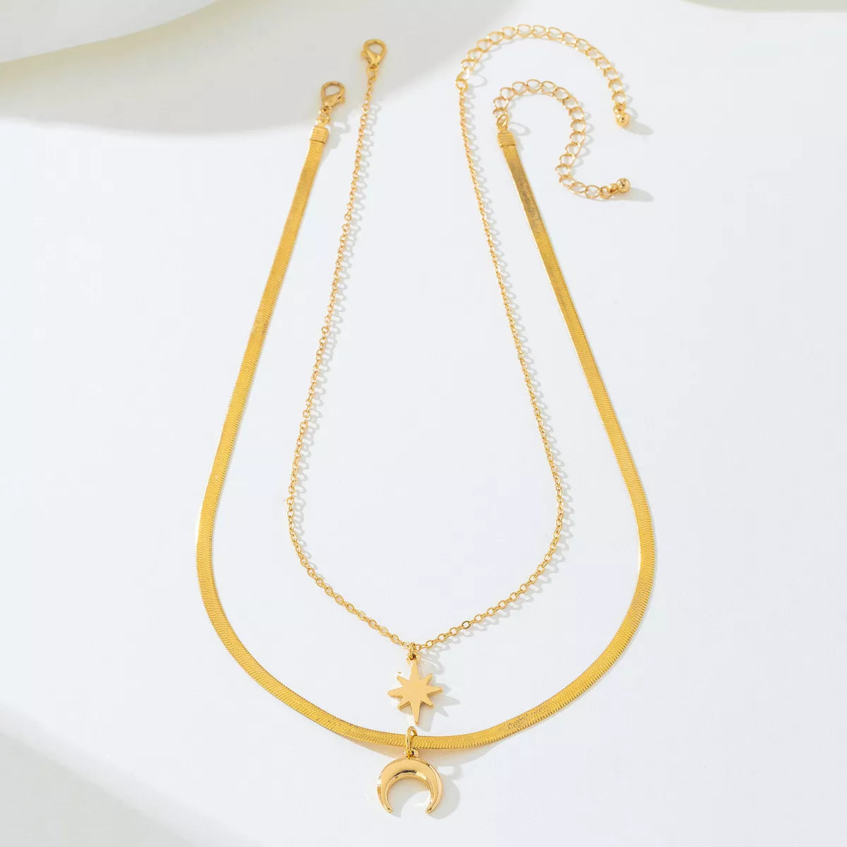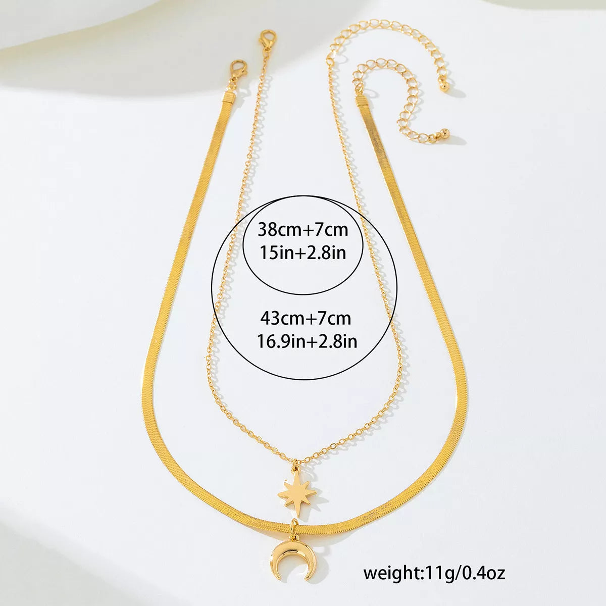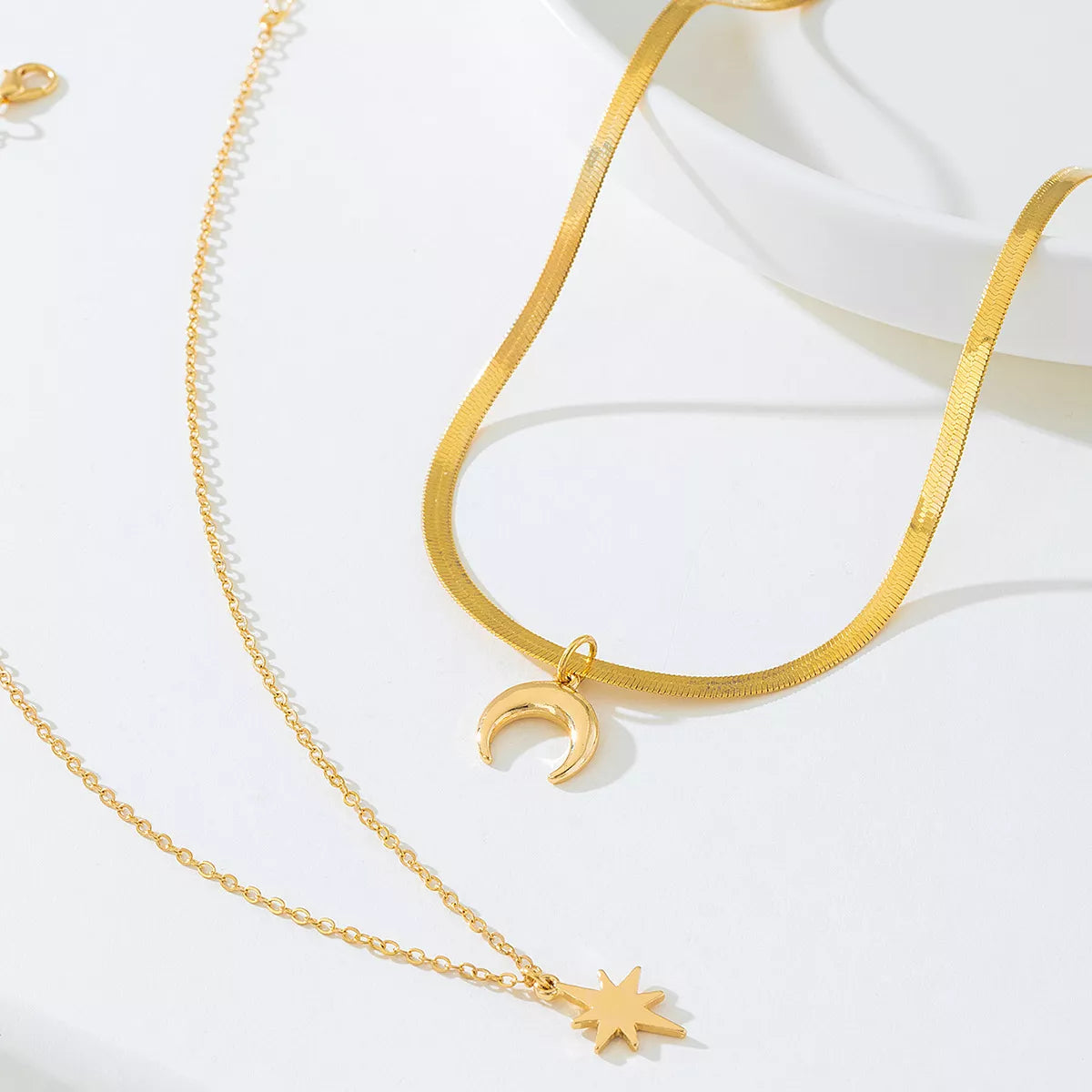 2 Piece 18K Gold-Plated Moon & Star Necklace