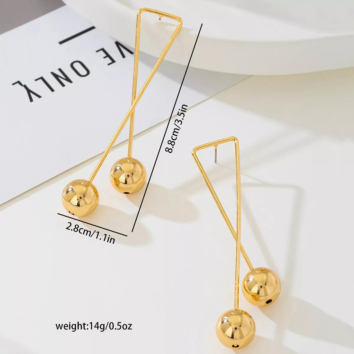 Modern Geometric Triangle Gold Ball Drop Earrings