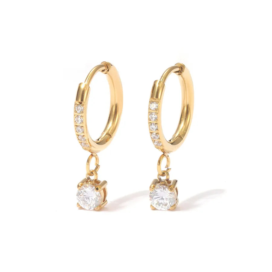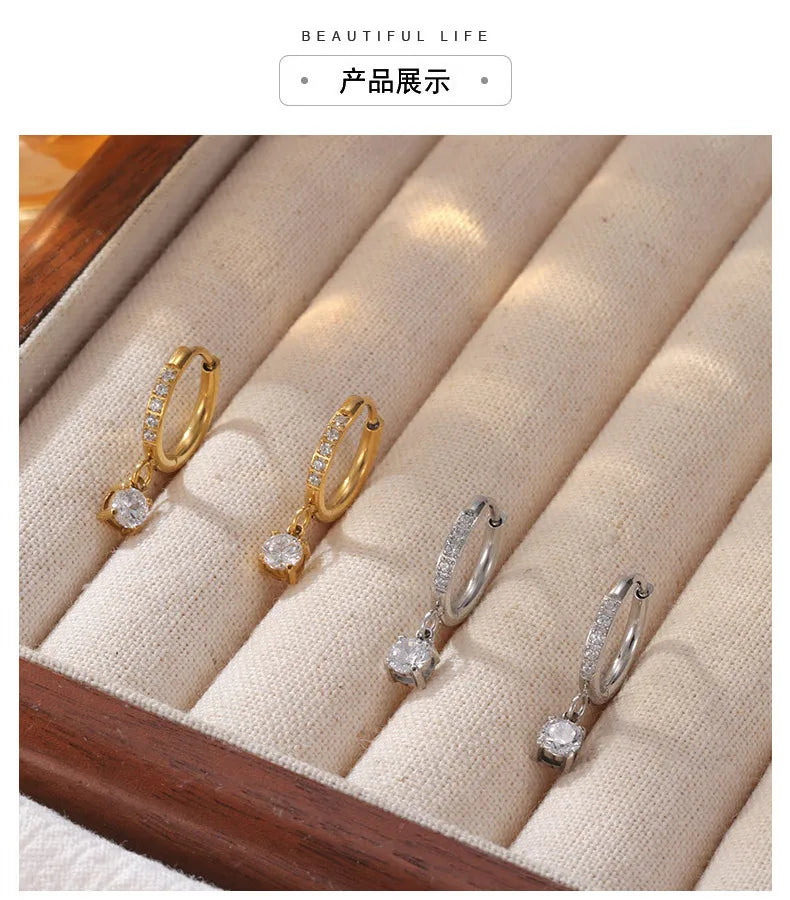 Stainless Steel Full Diamond Four-Prong Zircon Earrings