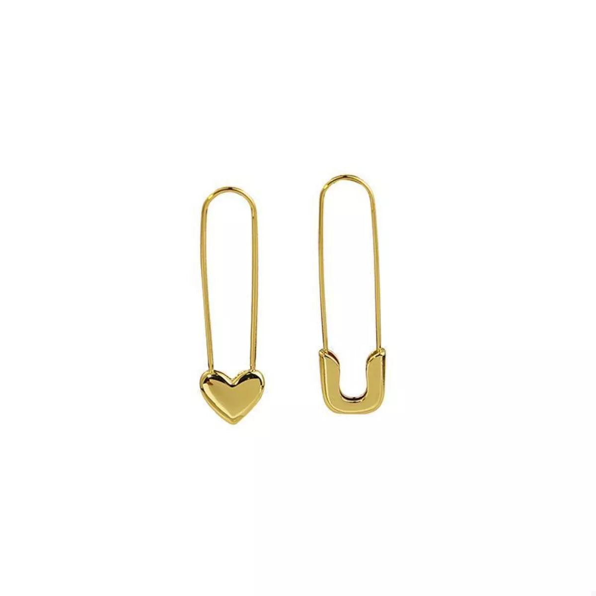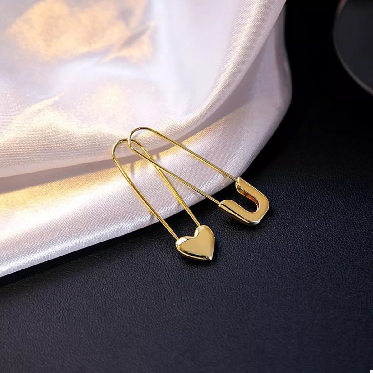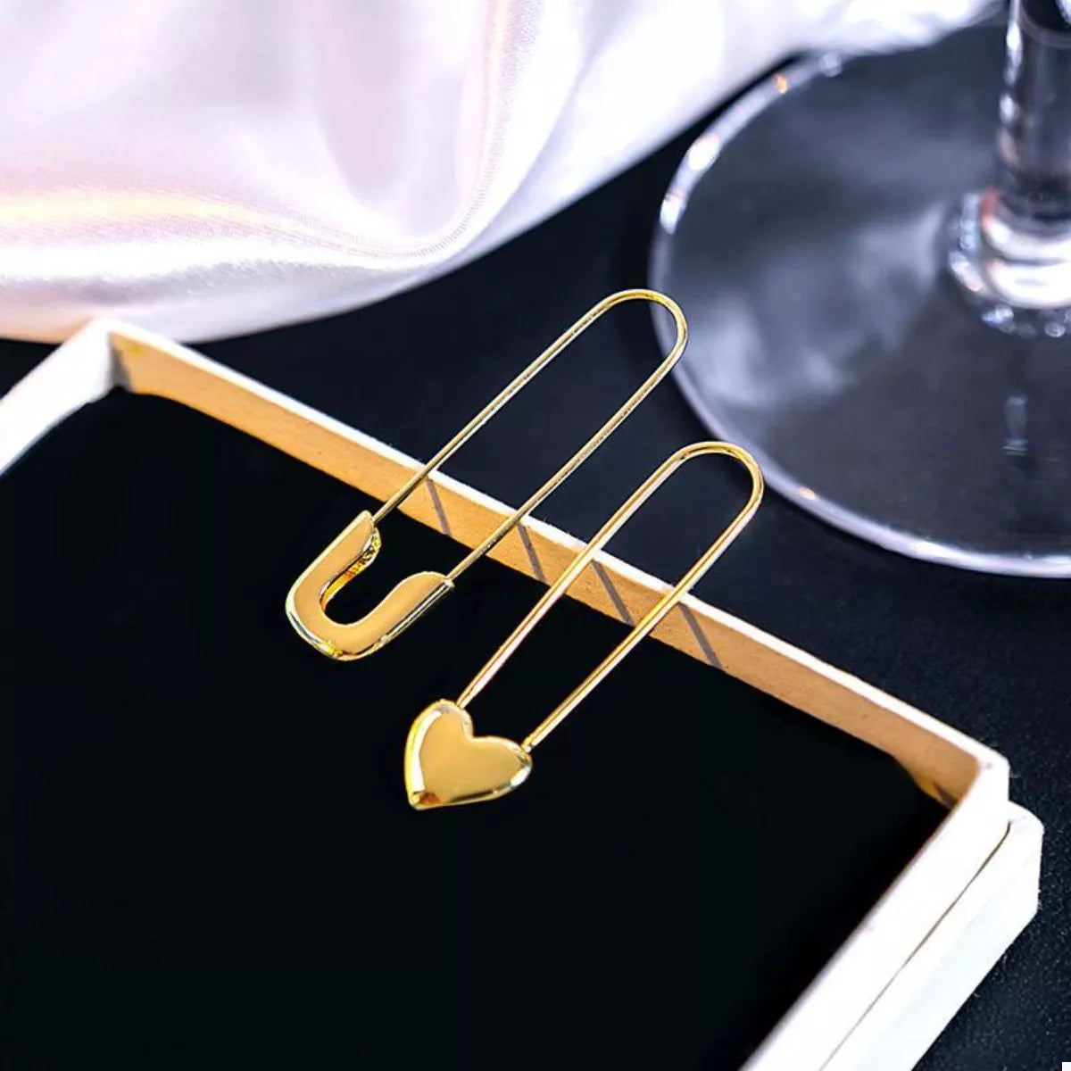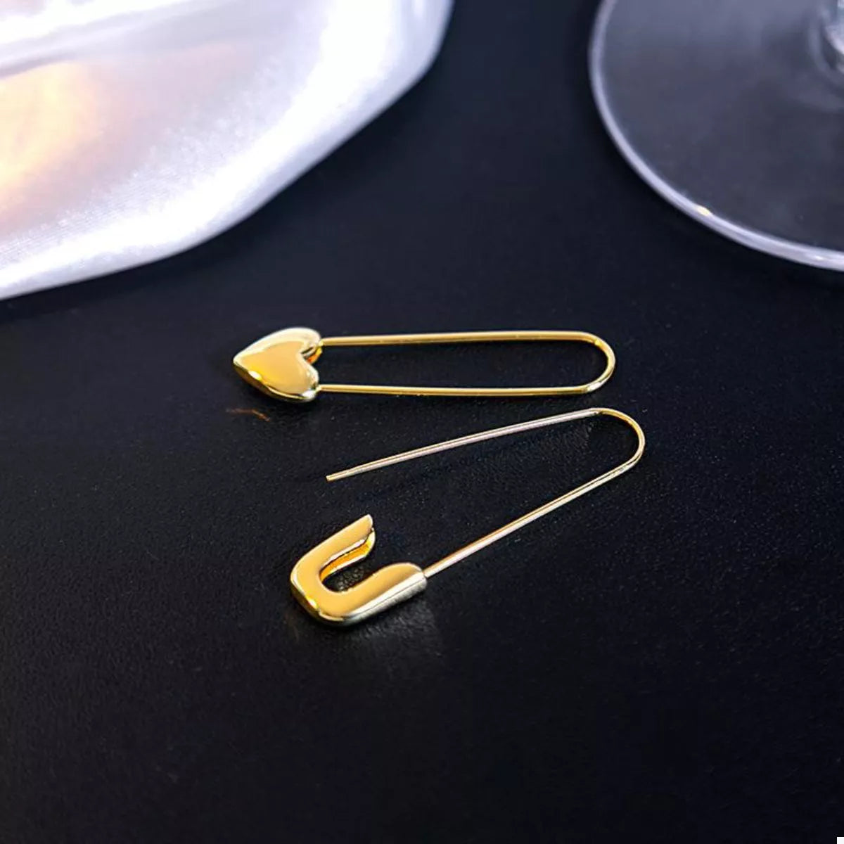 18K Gold-Plated Alloy Heart Safety Pin Drop Earrings