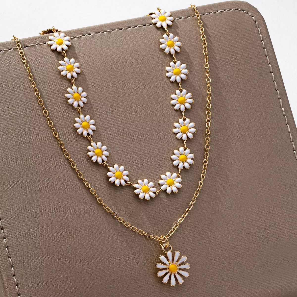 2 Piece 18K Gold-Plated Daisy Necklace