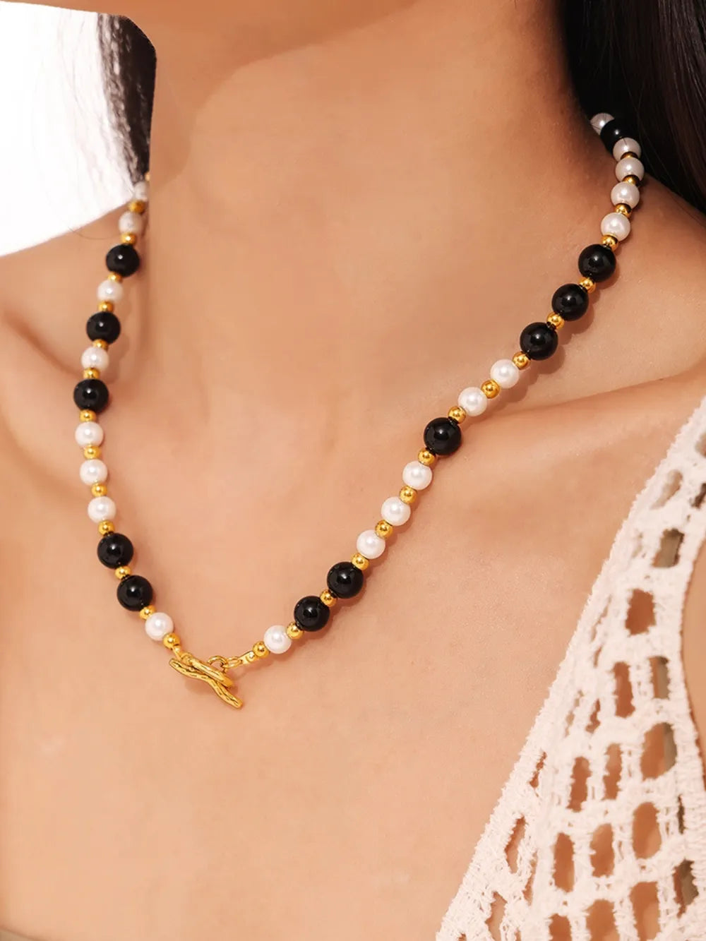 Stainless Steel Agate Shell Bead Necklace