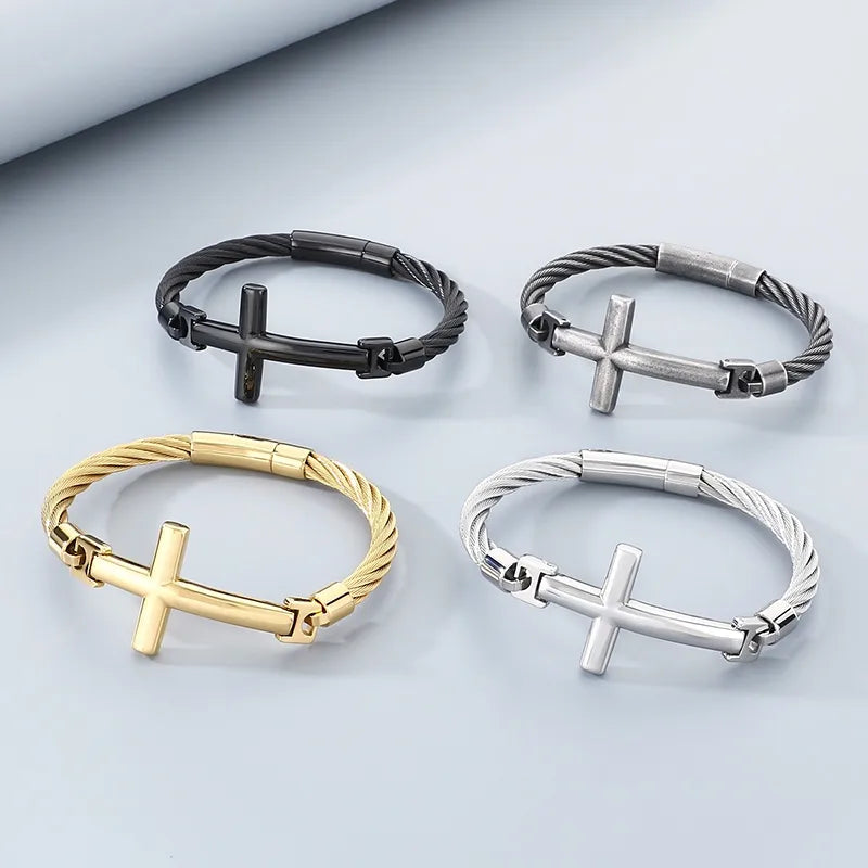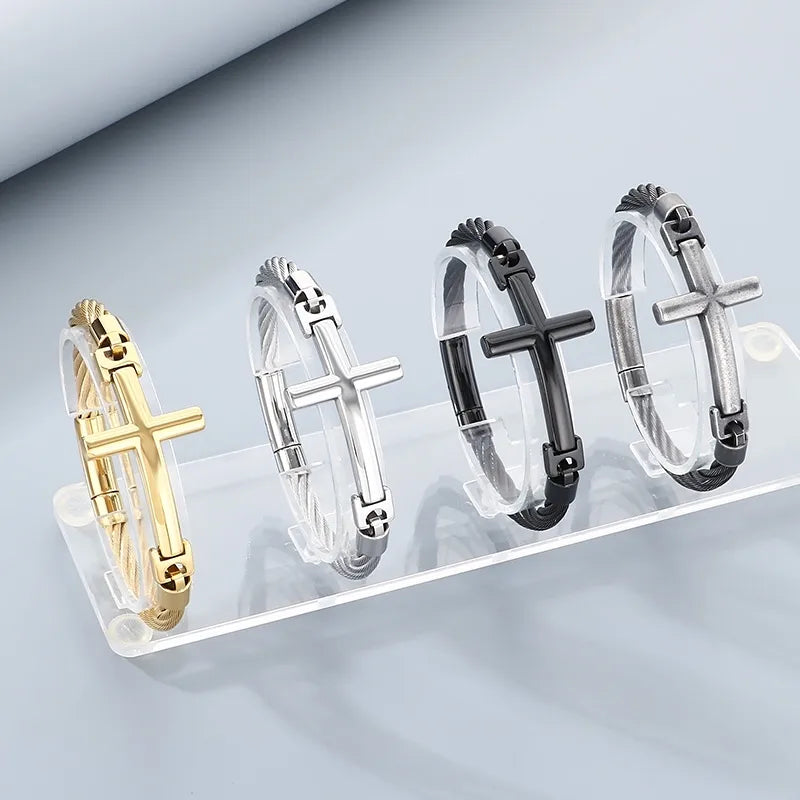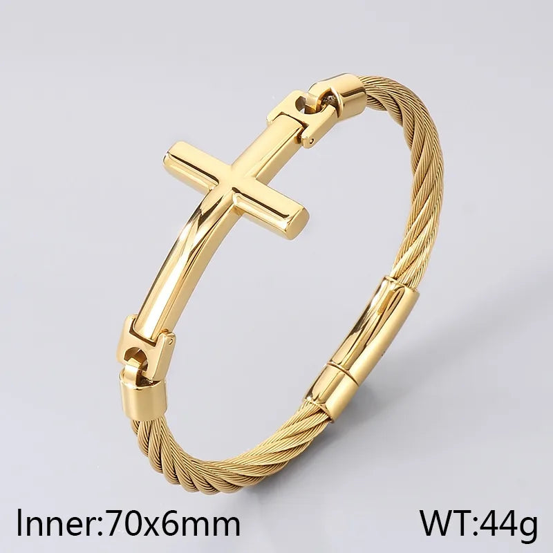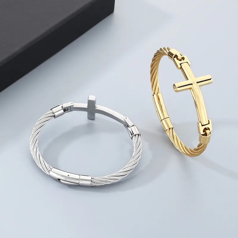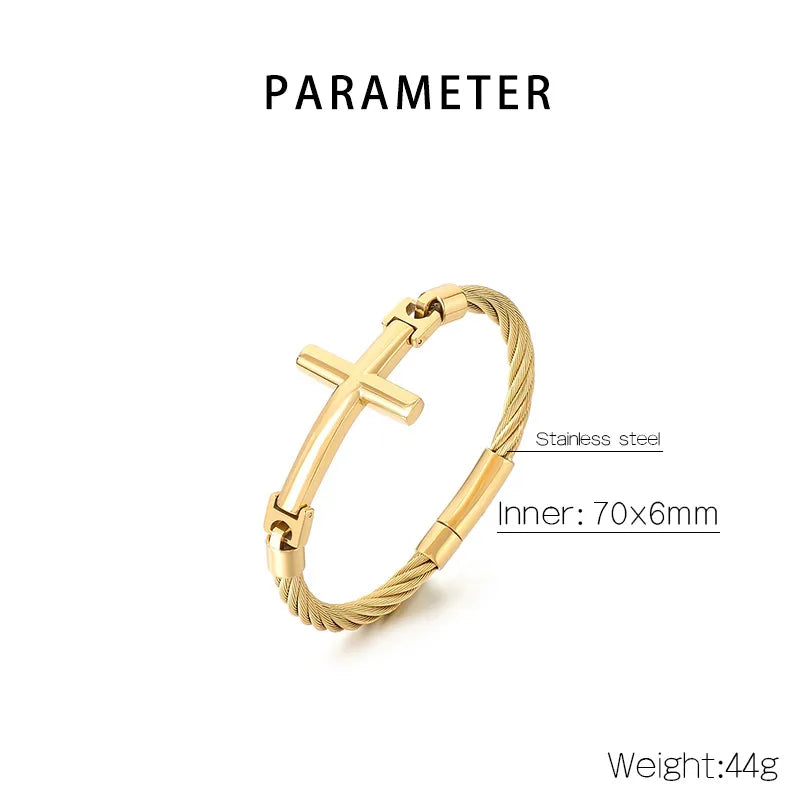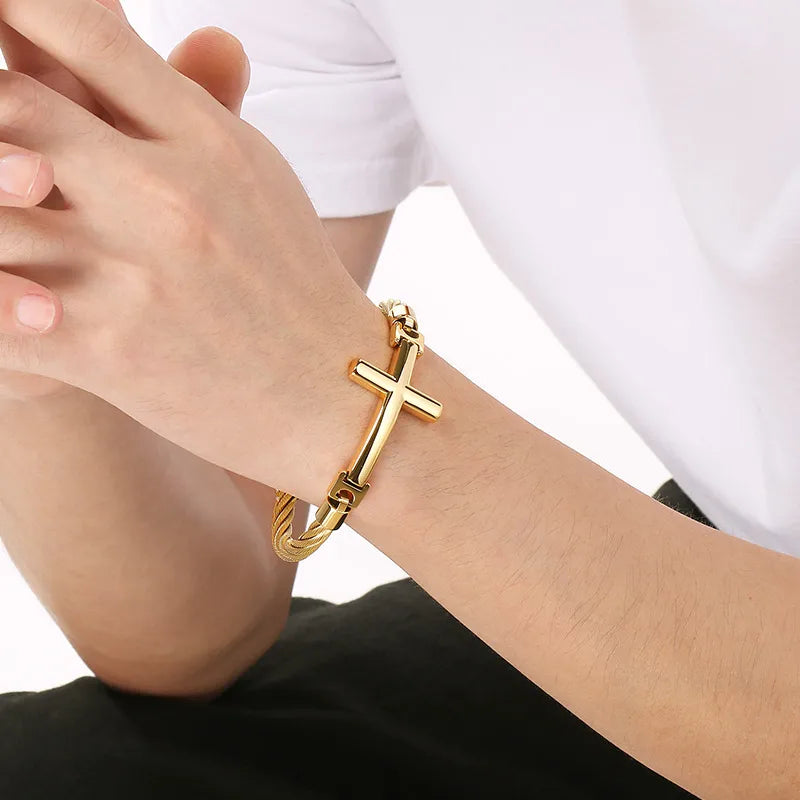 18K Gold-Plated Stainless Steel Curved Cross Wire Bracelet