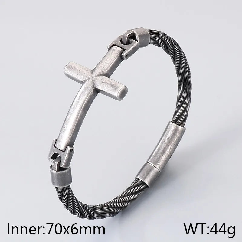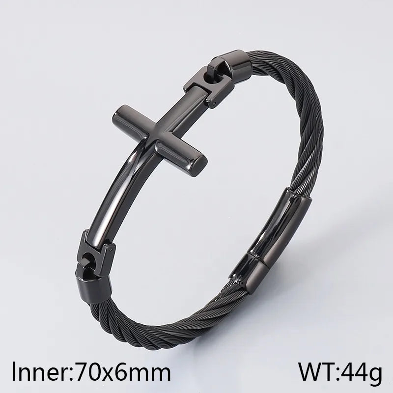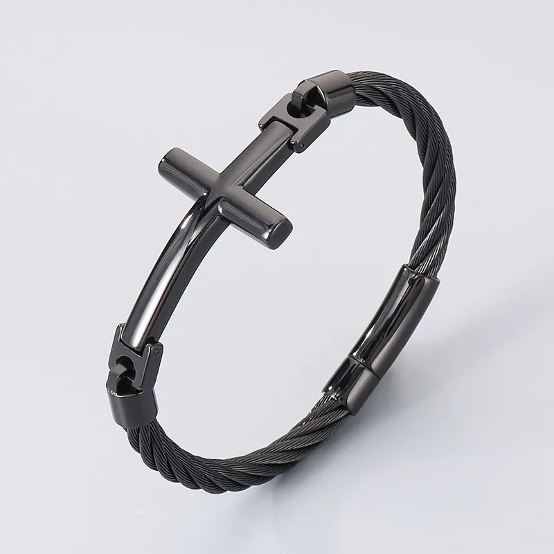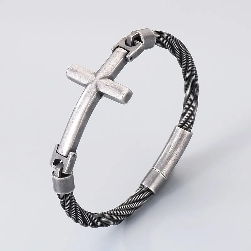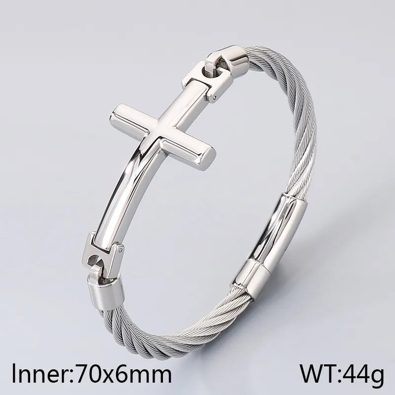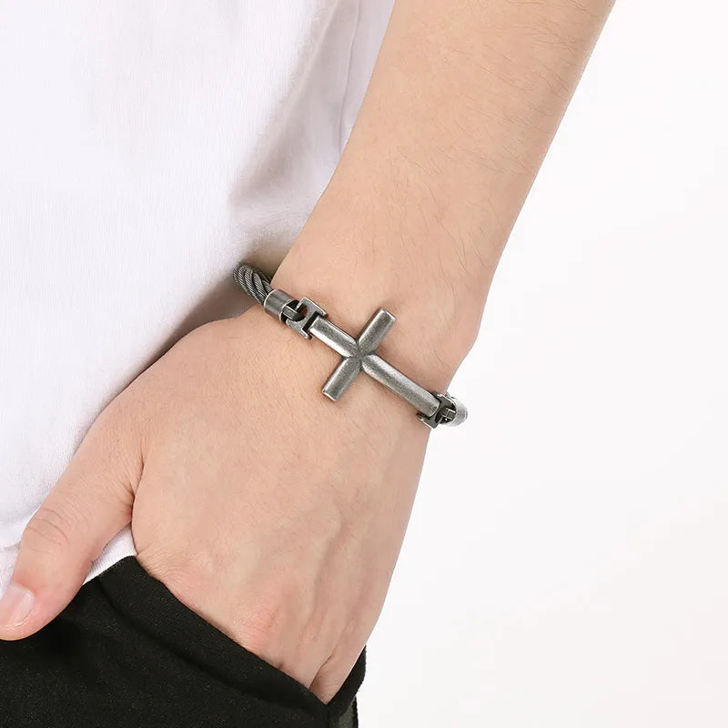 18K Gold-Plated Stainless Steel Curved Cross Wire Bracelet