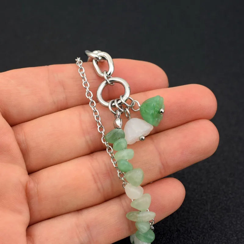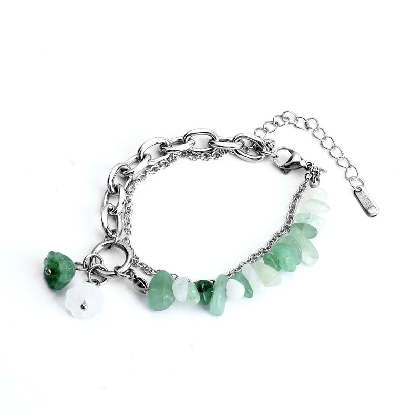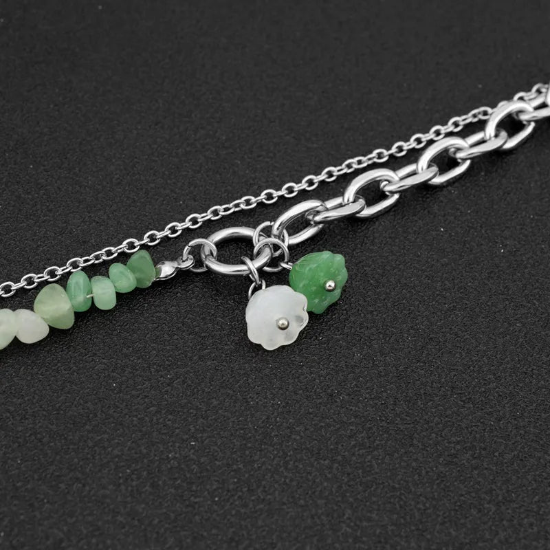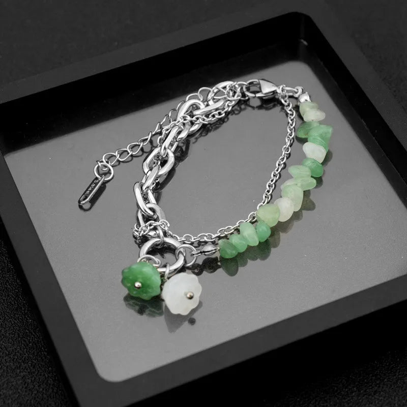 Unisex Titanium Steel Bracelet with Green Jade Accents – Asymmetric Geometric Design