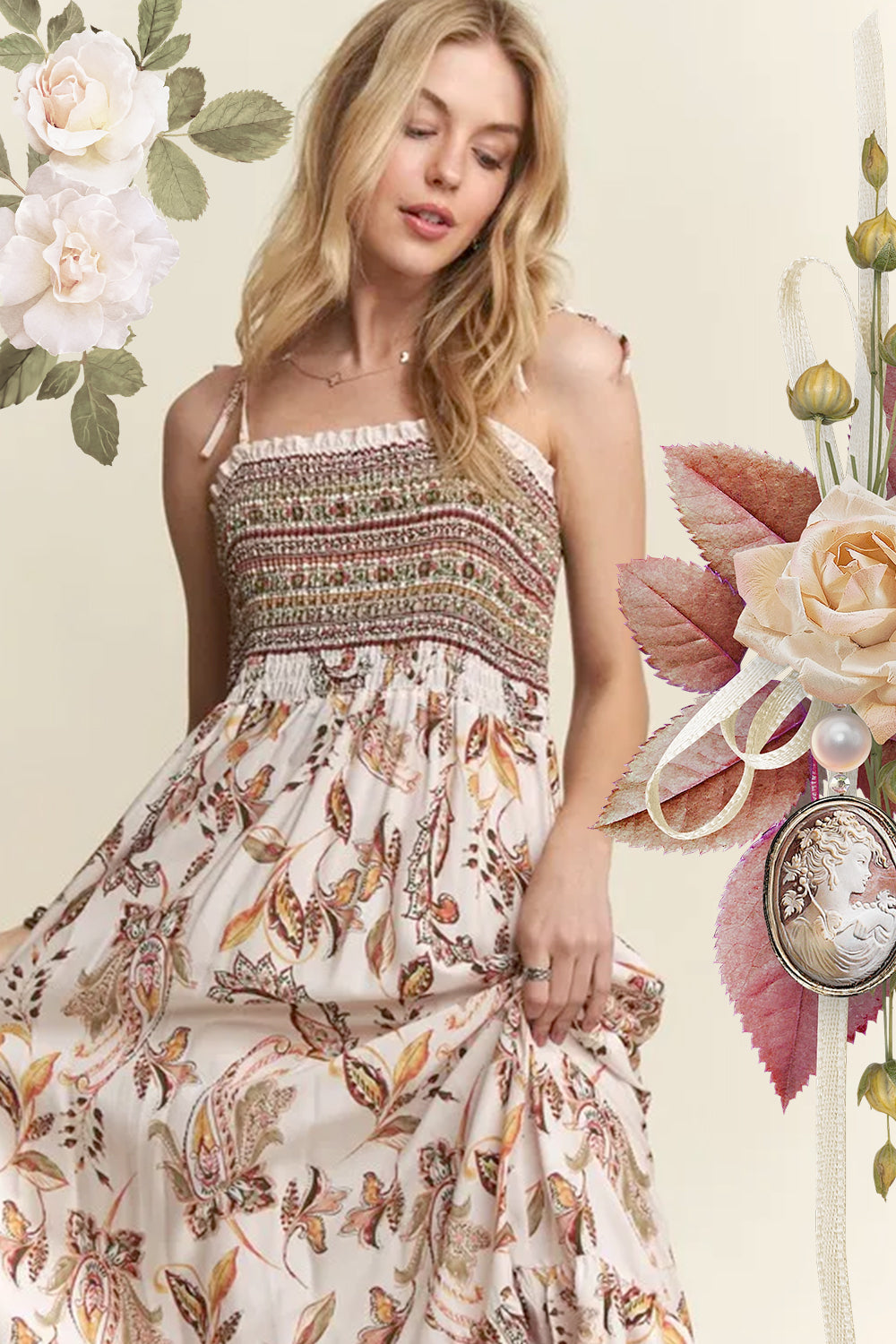 HEYSON Full Size Floral Smocked Tiered Midi Dress