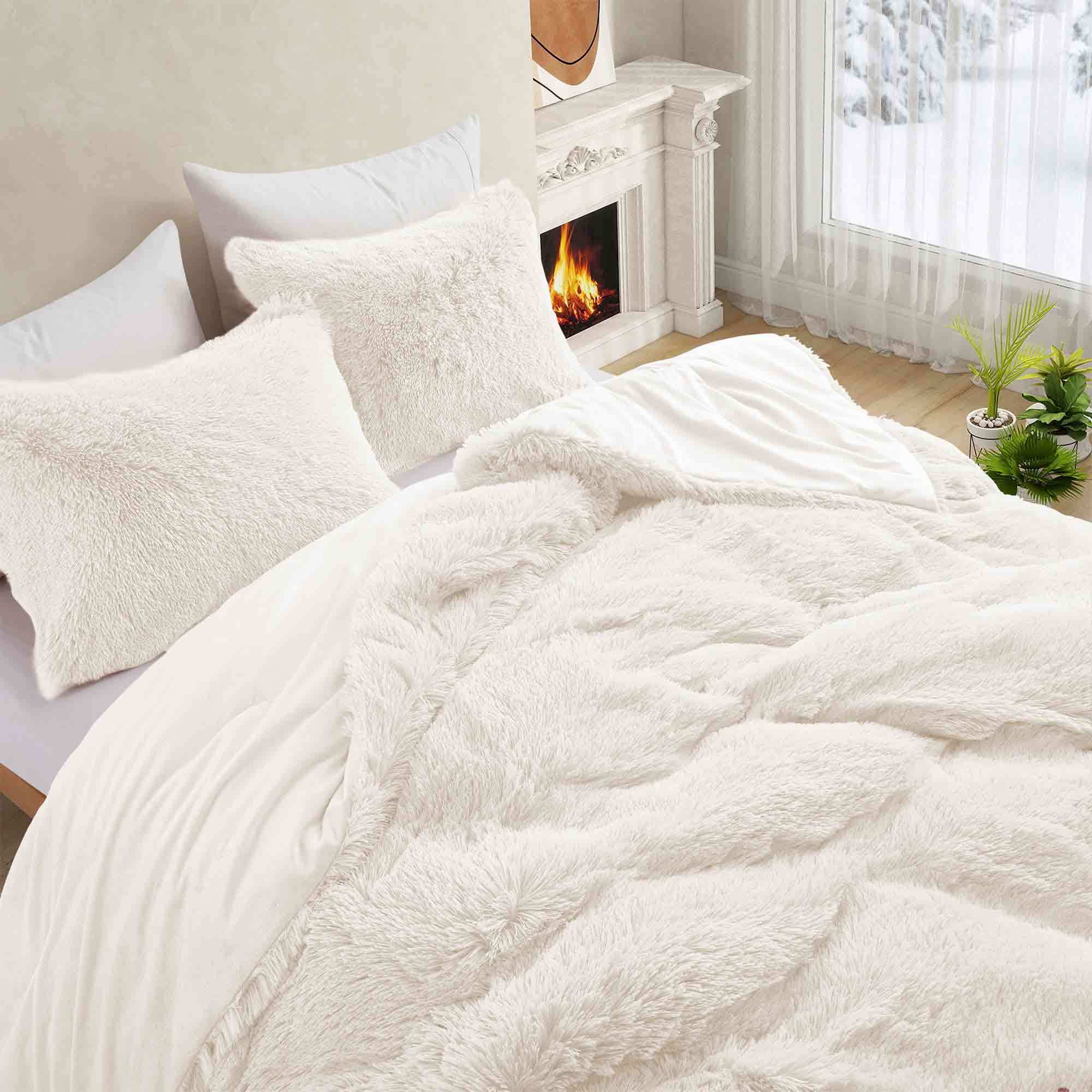 Cream White Fleece Fluffy Plush Bedding, Luxury Heavyweight Faux Fur All Season