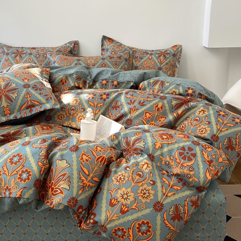 Bohemian Style Floral Pattern Bedding Set 1 Duvet Cover + 2 Pillowcases