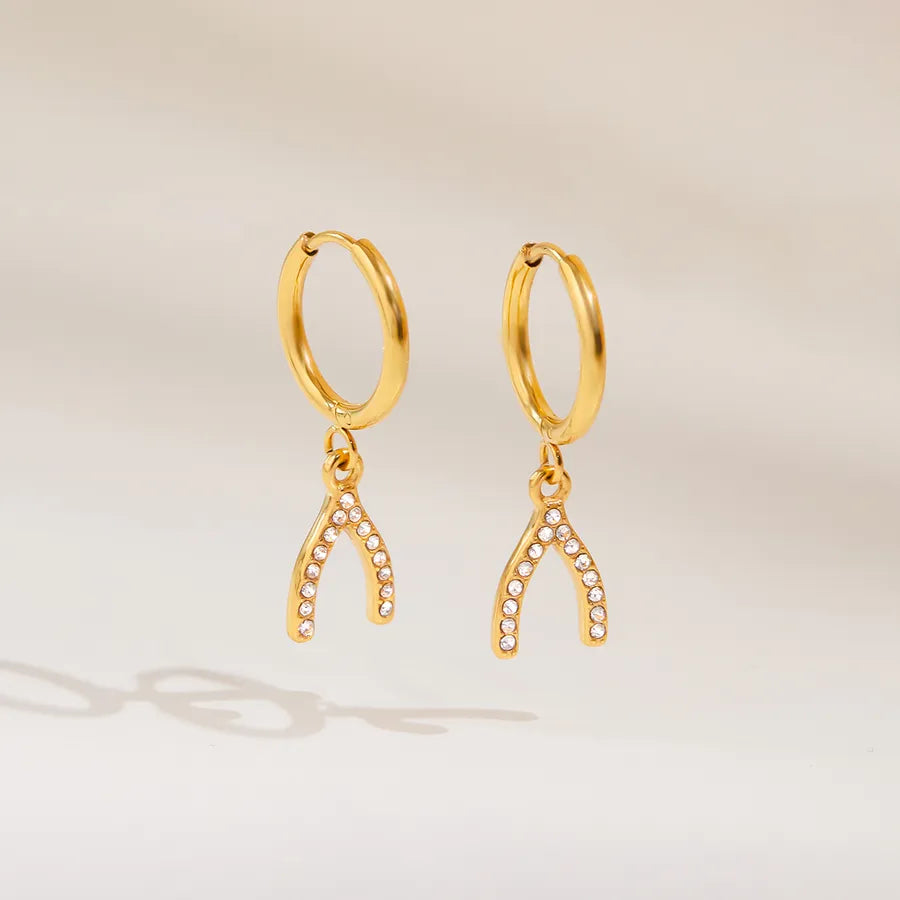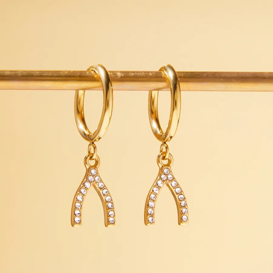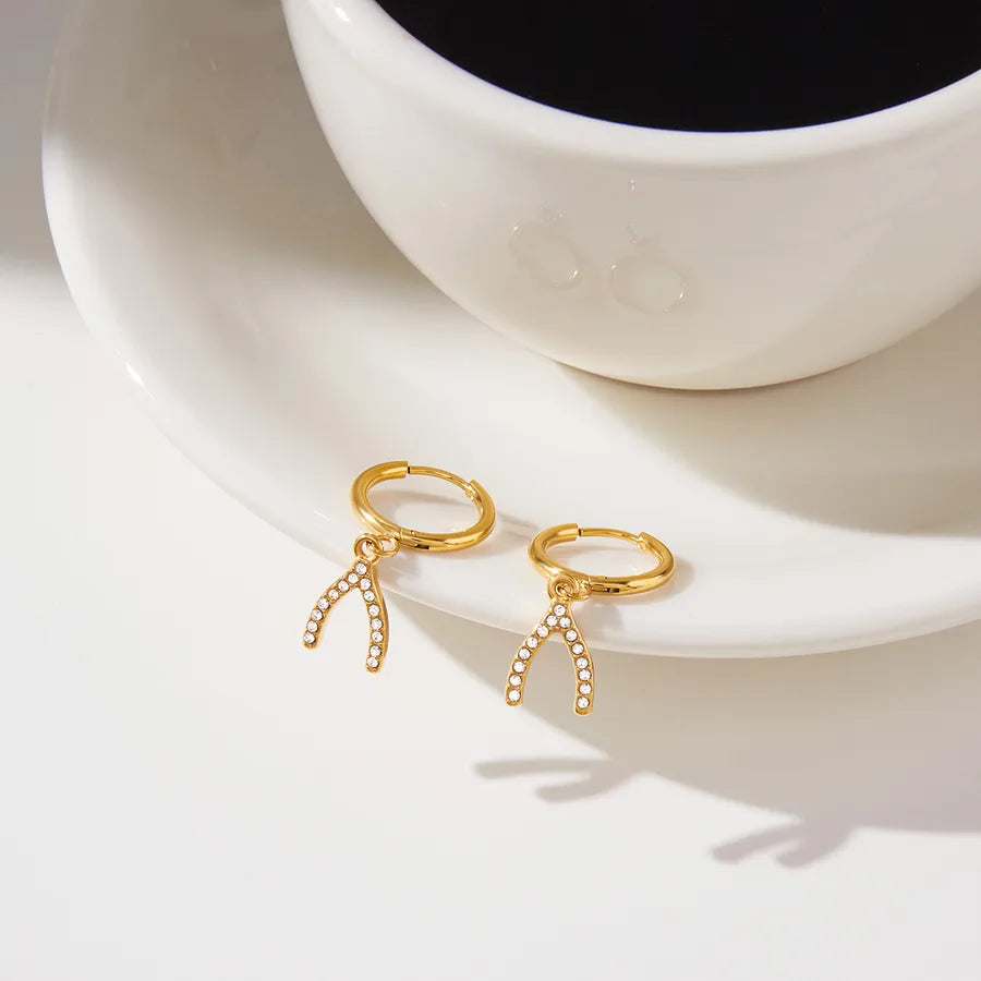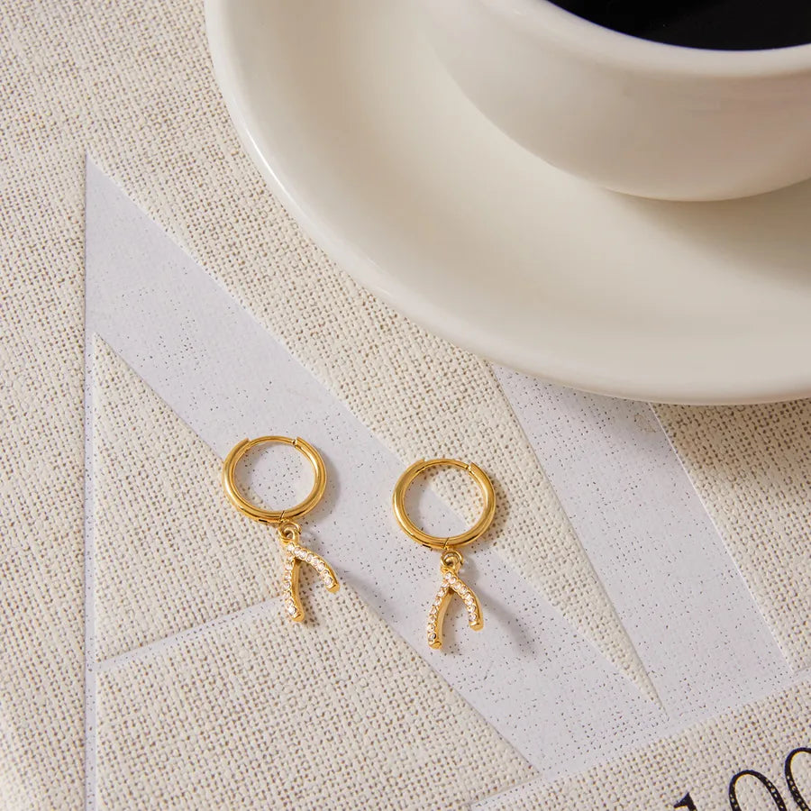 Classic Style 18K Real Gold Plated Y-shaped Pendant Earrings