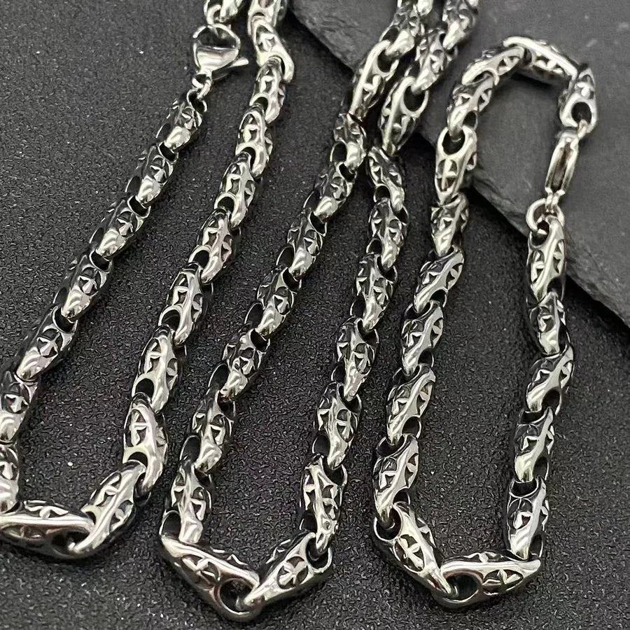 Unisex Stainless Steel Cross-Link Bracelet – Retro Hip Hop Design