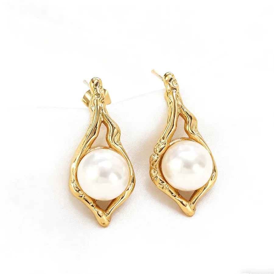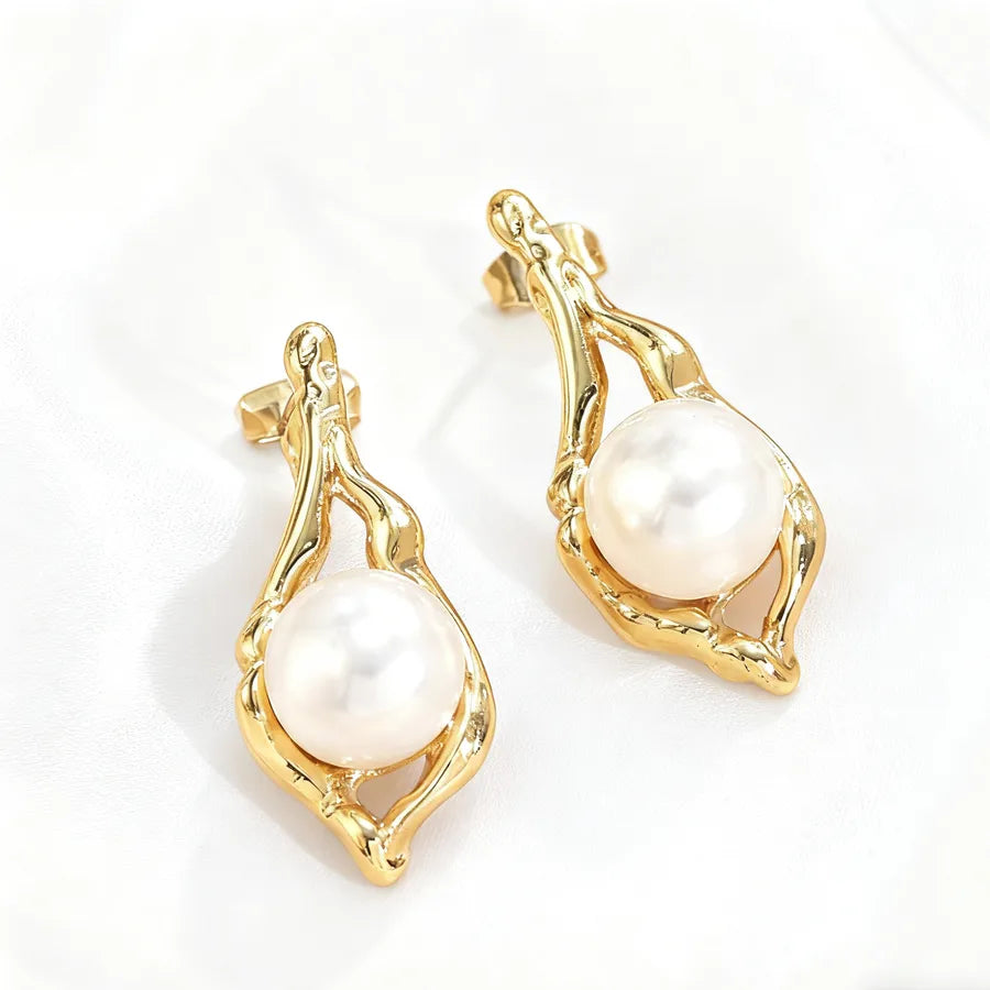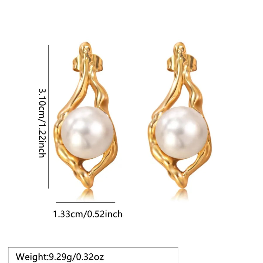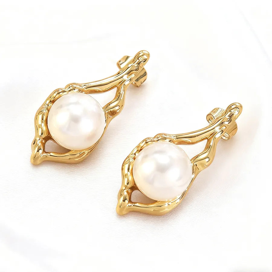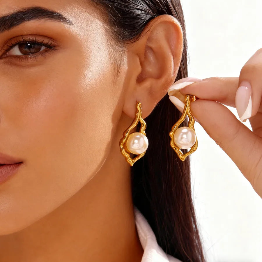Women’s Elegant Pearl Golden Plated Retro Earrings