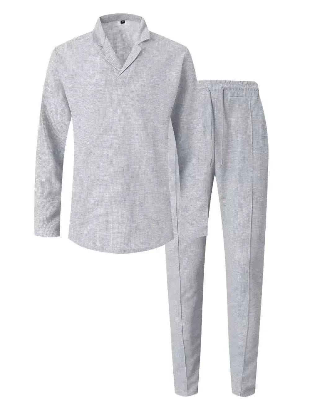 Men's Full Size Waffle-Knit Long Sleeve Top and Pants Set Plus Size