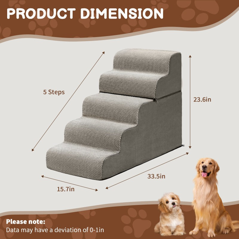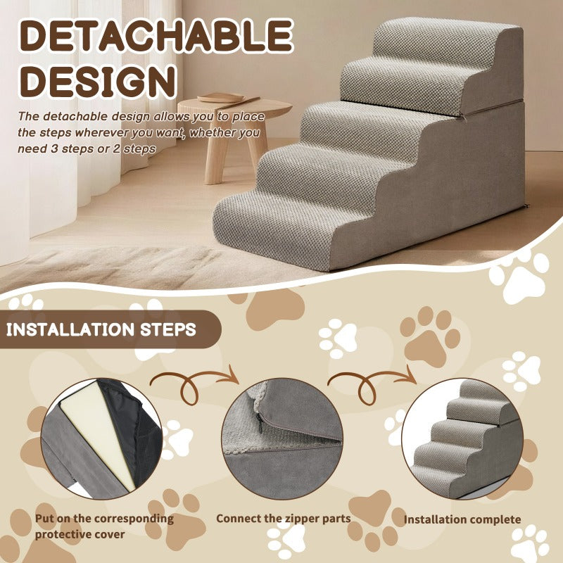 Curved pet climbing ladder with a removable lining made of gray 28D sponge and corn velvet, featuring five levels.
