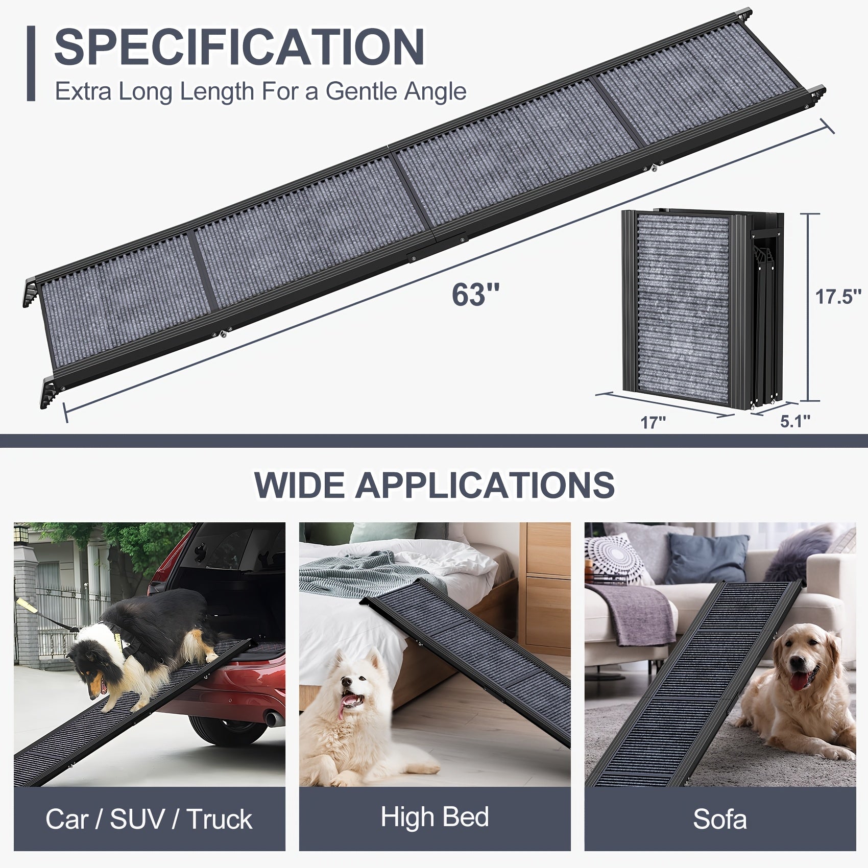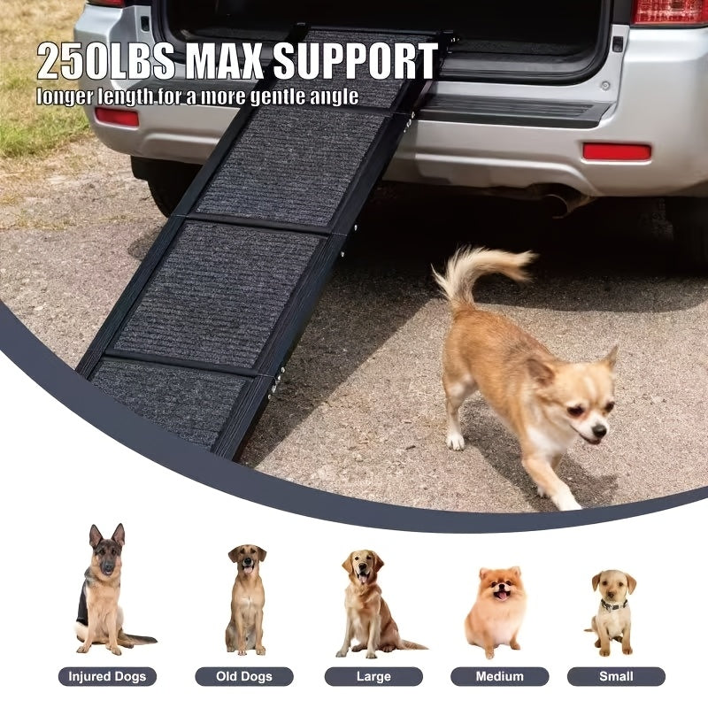 Dog Ramp For Car, Wide Folding Portable Pet Stair Ramp With Non-Slip Rug Surface