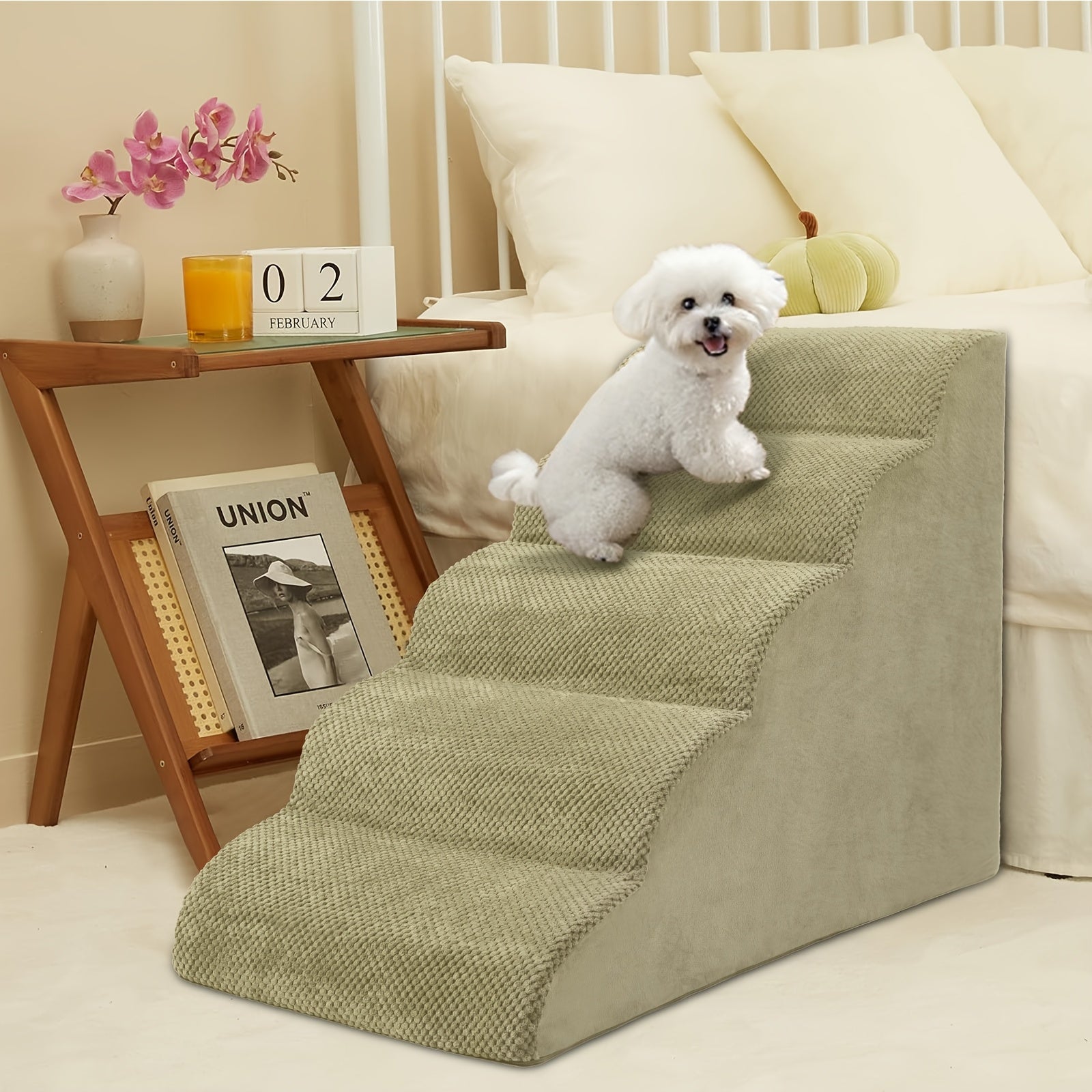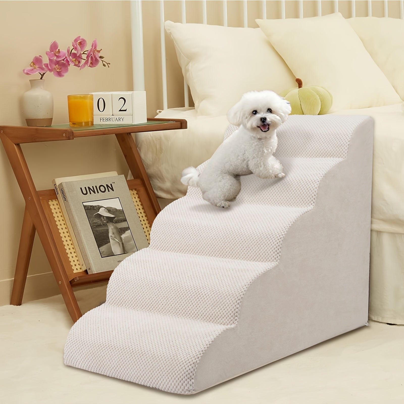 High-Density Foam Pet Steps, Extra Wide Dog Ramp with Non-Slip Bottom for High Beds, Couch, and Sofa