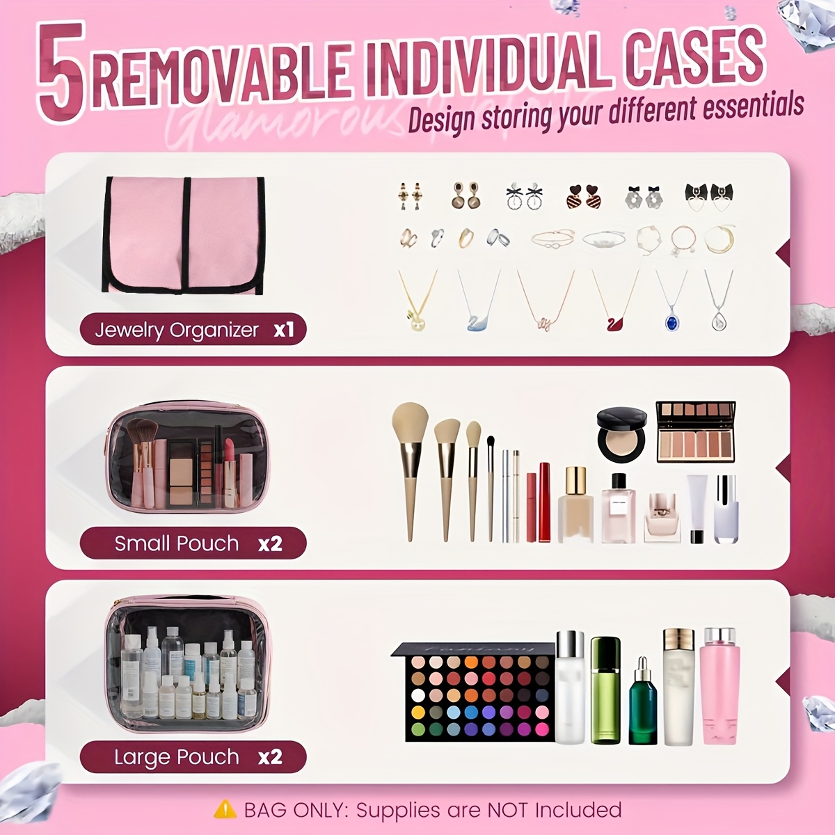 Makeup Bag Cosmetic Bag Organizer with 4 Inner Removable Pouches Multifunctional Travel Makeup Case