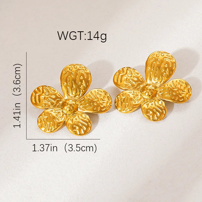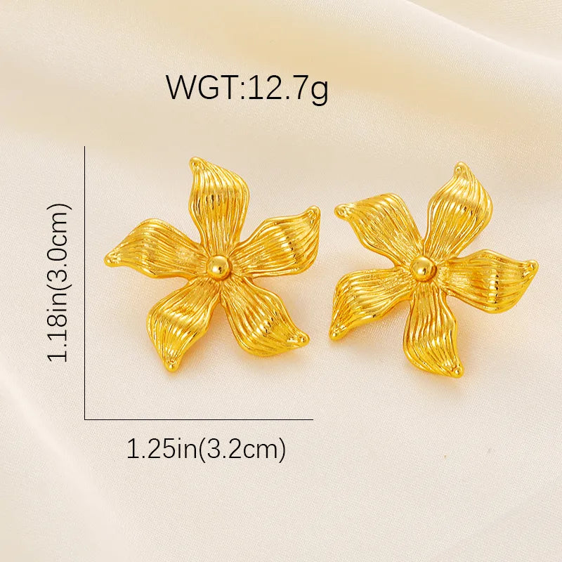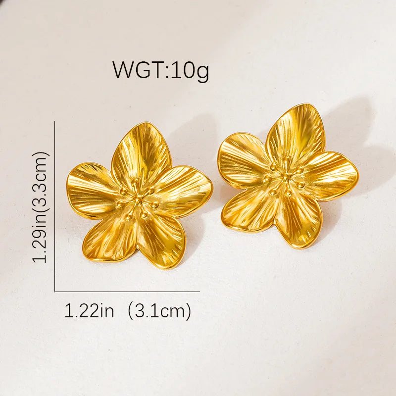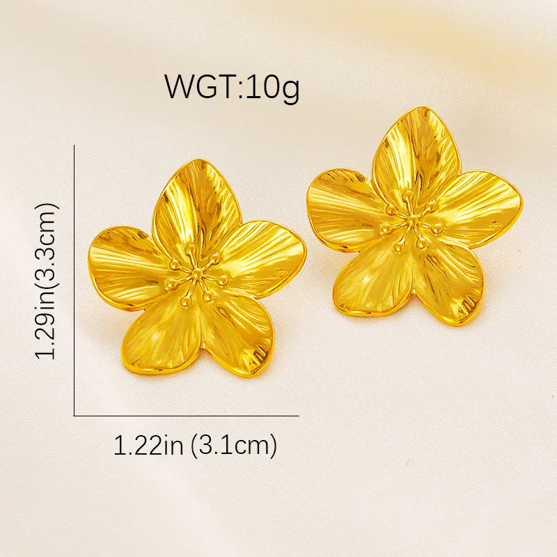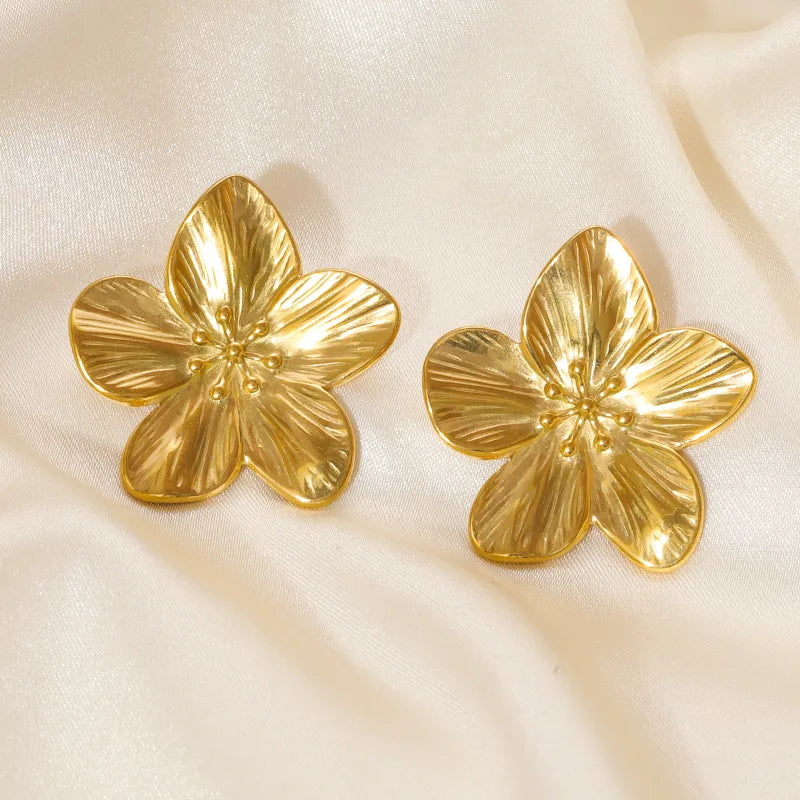 Gold Flower Earrings Stainless Steel Stud Earrings