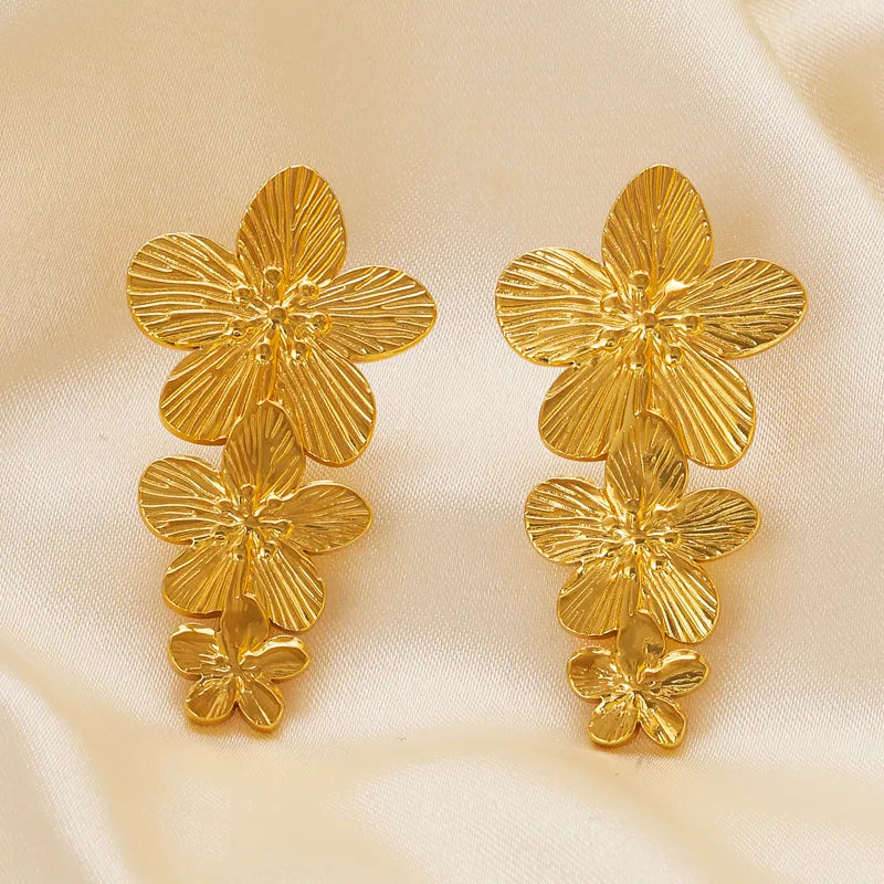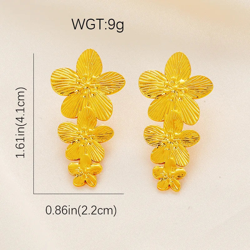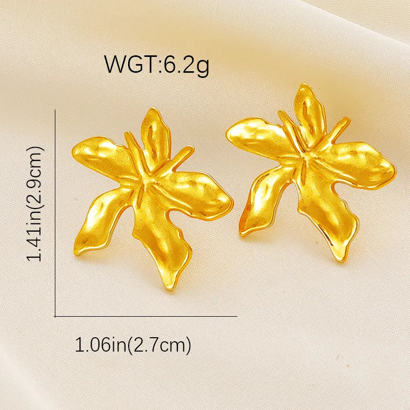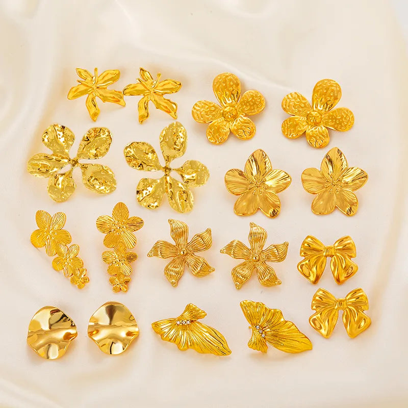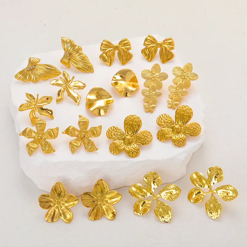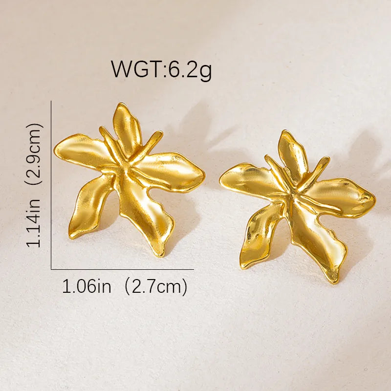 Gold Flower Earrings Stainless Steel Stud Earrings