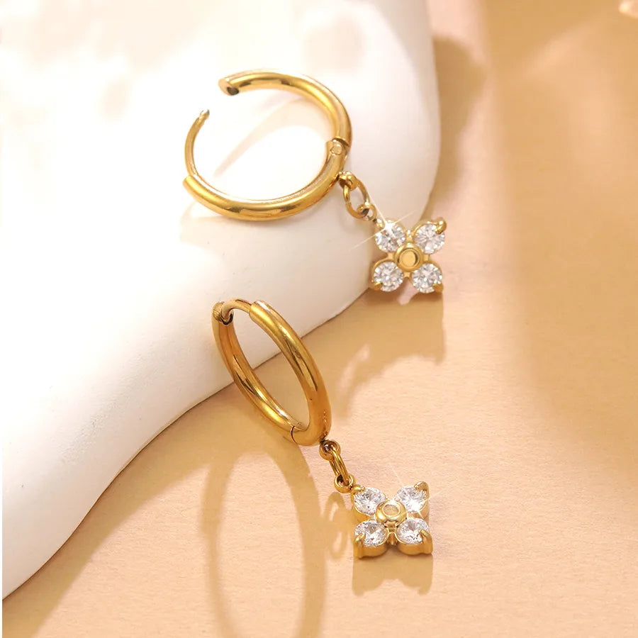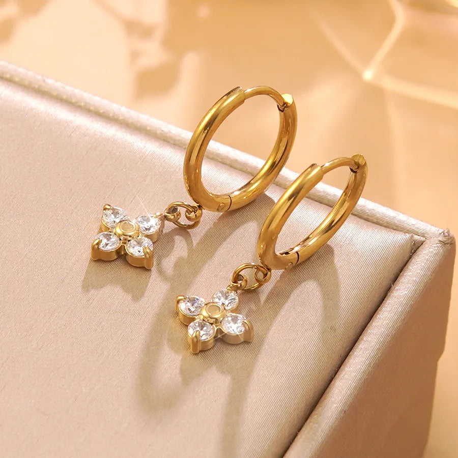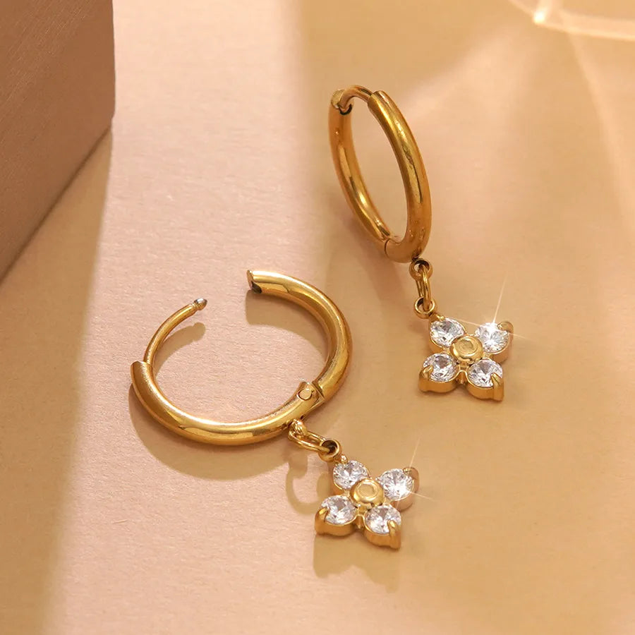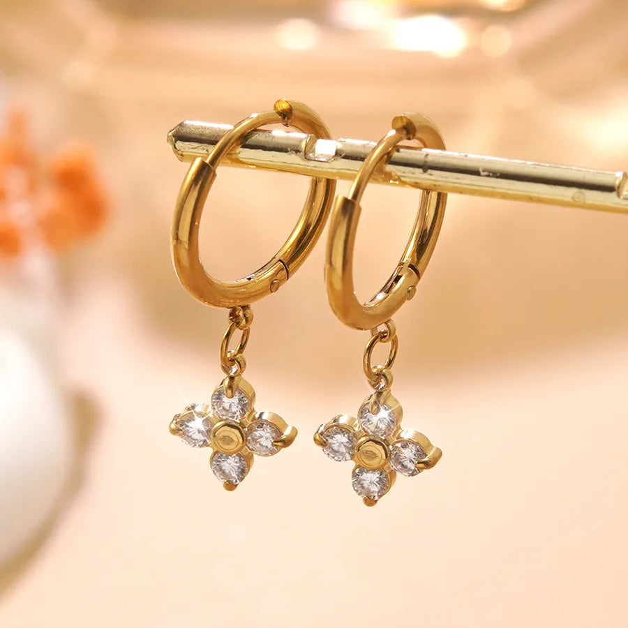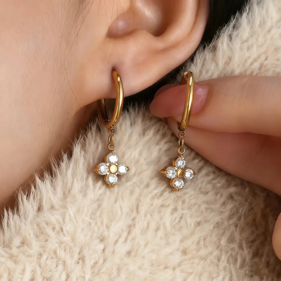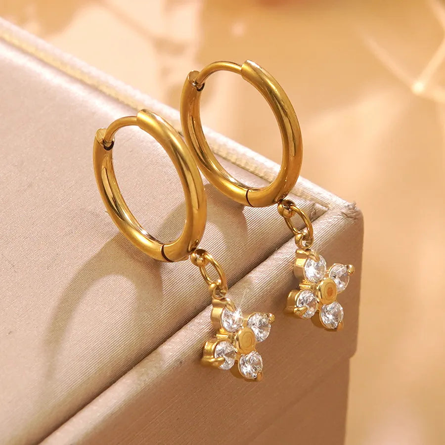 Simple Gold Plated Flower Glass Earrings