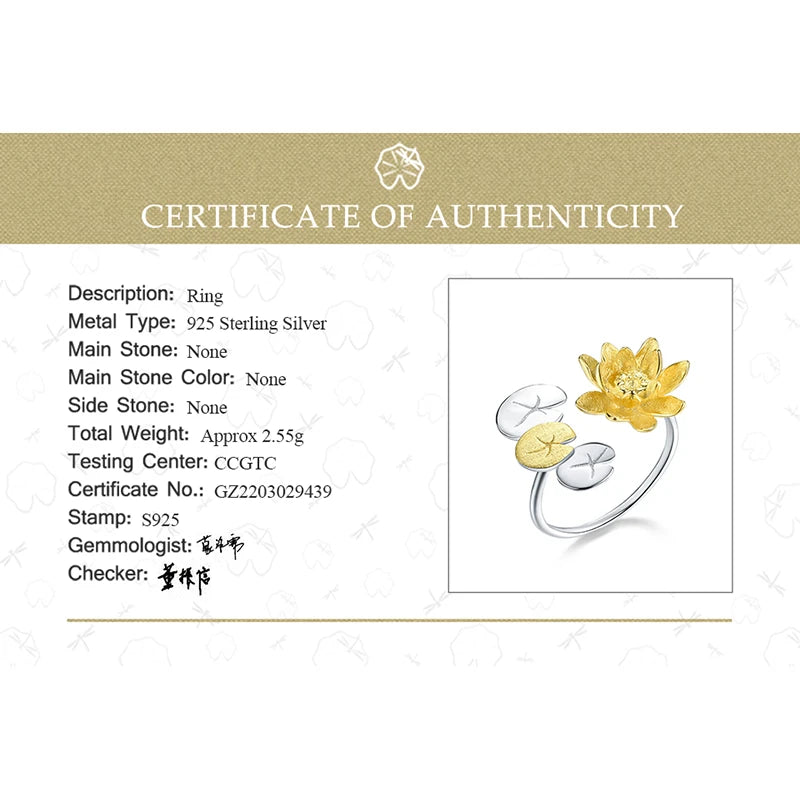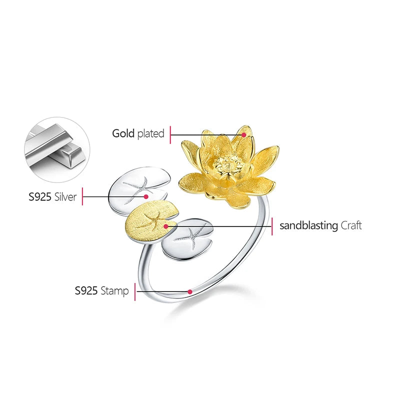 Elegant Water Lily Flower Adjustable Rings 925 Sterling Silver