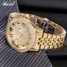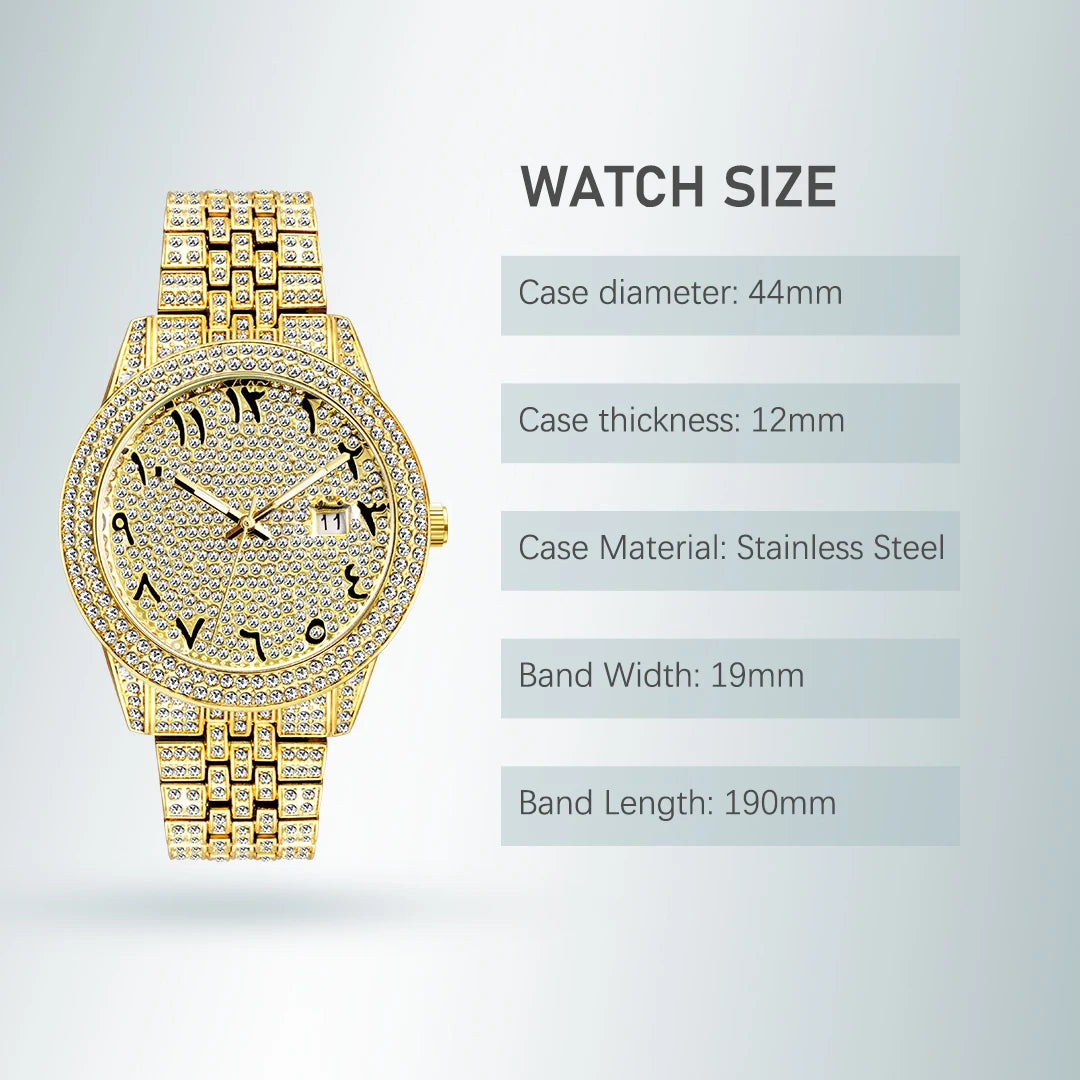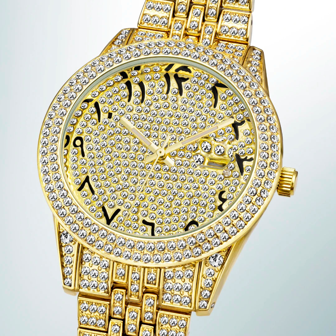MISSFOX Watch For Men New Full Diamond Luminous Waterproof Male Quartz Wrist Watches Fashion 18k Gold Stainless Steel Calendar Women Reloj