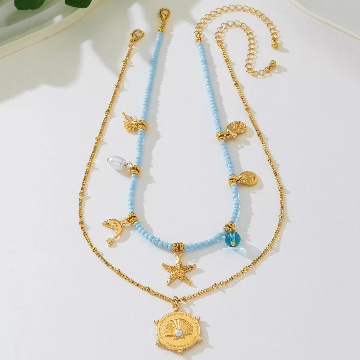 2-Piece Beaded Charm Necklace with Pendant